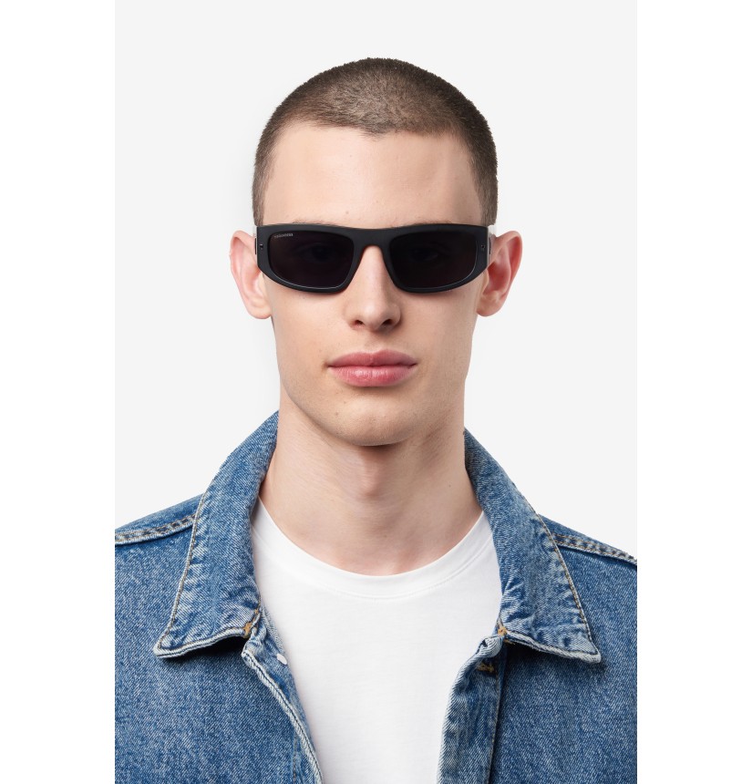A dash of urban style and daring aesthetics define these men's sunglasses by DSQUARED2. The rectangular acetate frames provide full coverage, and the temples are maxi in their proportions. The ICON logo is sure to get noticed: it comes in different colours and techniques, including a printed version with a paint splatter detail for the most creative and bold version. These glasses can hold prescription lenses, so that they can be worn even when the sun goes down.