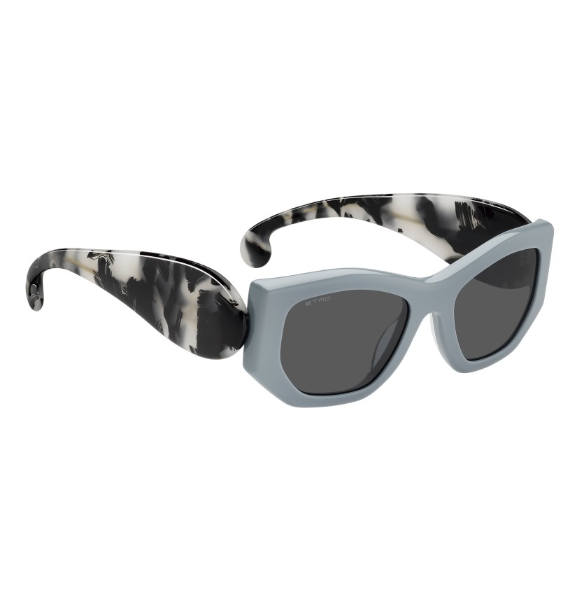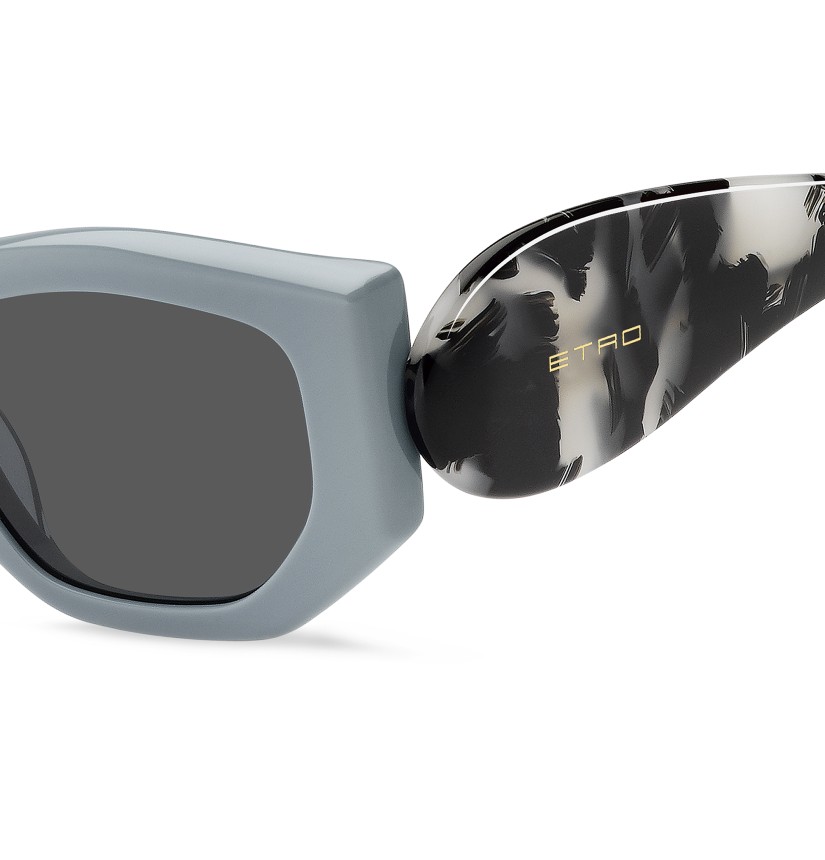 The "Etropaisley" eyewear line breathes new life into the timeless pattern. These sunglasses embody playful decadence with their geometric angles and strong acetate shapes, offered in a sophisticated colour palette. Seemingly simple from the front, this frame stands out with its unique temples – designed to resemble the iconic Paisley shape. The brand's minimalist logos on each side and the tinted lenses add a subtle yet stylish detail.