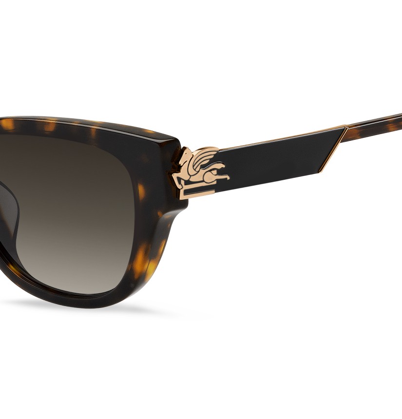 Otherworldly and futuristic themes combine in ETRO's "Bold Pegaso" eyewear collection – a tribute to the mythological Pegasus. Part of the Asian Fitting edit, these sunglasses feature a bevelled acetate front and ultra-glamorous metal temples, coated with luxurious lacquer for a jewellery-inspired finish. The iconic end tips and logo lettering on the tinted lenses lend them an unmistakable touch of elegance.