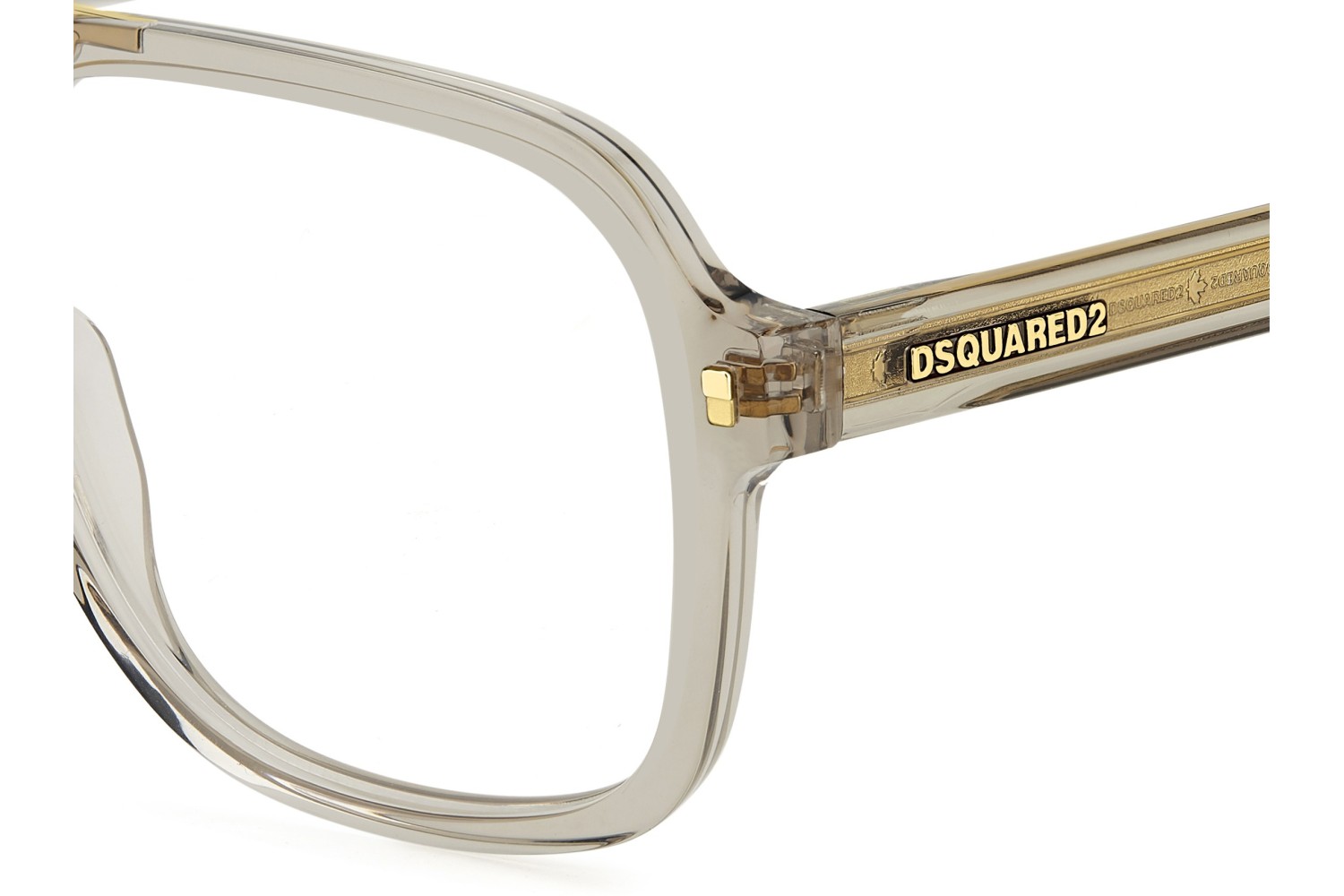 Turning classic eyeglasses into a statement is the natural vocation of DSQUARED2. This acetate style is crafted into a geometric shape, with bevelled edges and moderate volumes for day-to-day use. The available colour options include a transparent version with a visible, finely patterned wire core. The brand's signatures stand out: an extended logo in relief on the outside of both temples and a metal plaque with the ‘DSQUARED2 Ceresio 9 – Milano’ inscription on the inside of one temple.