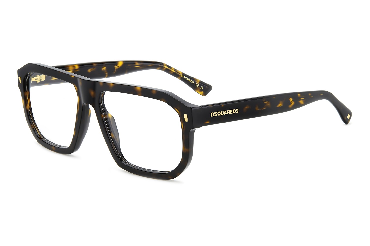 Turning classic eyeglasses into a statement is the natural vocation of DSQUARED2. This acetate style is crafted into a geometric shape, with bevelled edges and moderate volumes for day-to-day use. The available colour options include a transparent version with a visible, finely patterned wire core. The brand's signatures stand out: an extended logo in relief on the outside of both temples and a metal plaque with the ‘DSQUARED2 Ceresio 9 – Milano’ inscription on the inside of one temple.