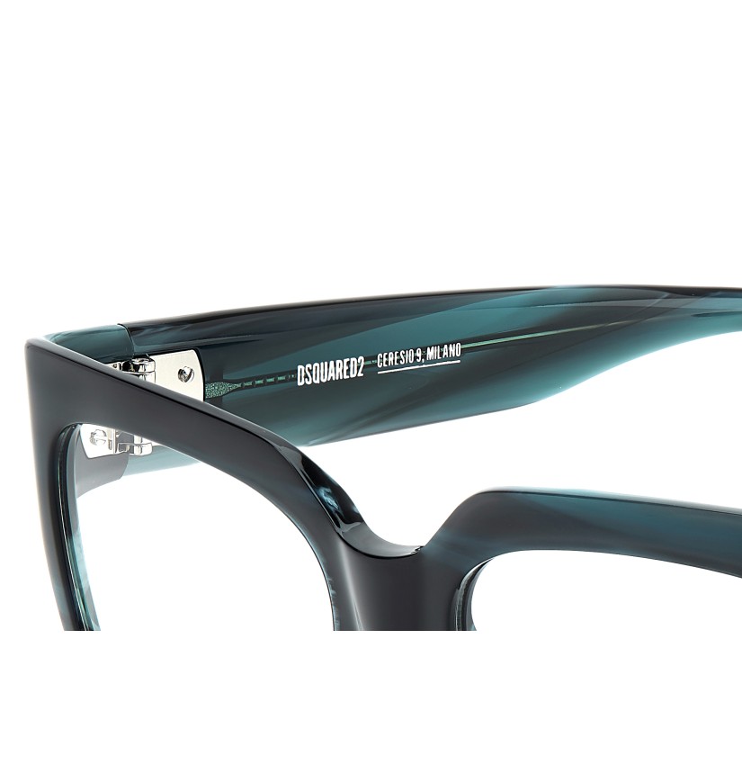 Impeccable in their construction, these DSQUARED2 women's eyeglasses embody youthful style. Their beauty is in their details, like the front which is crafted into an angle, to connect to the temples. The profile of the acetate frames has been reduced to offer day-to-day lightness. The temples are voluminous and stable thanks to the premium hinges. With an oversize D2 logo in relief on the sides, these glasses come in classic hues, including a two-tone multi-layer version.