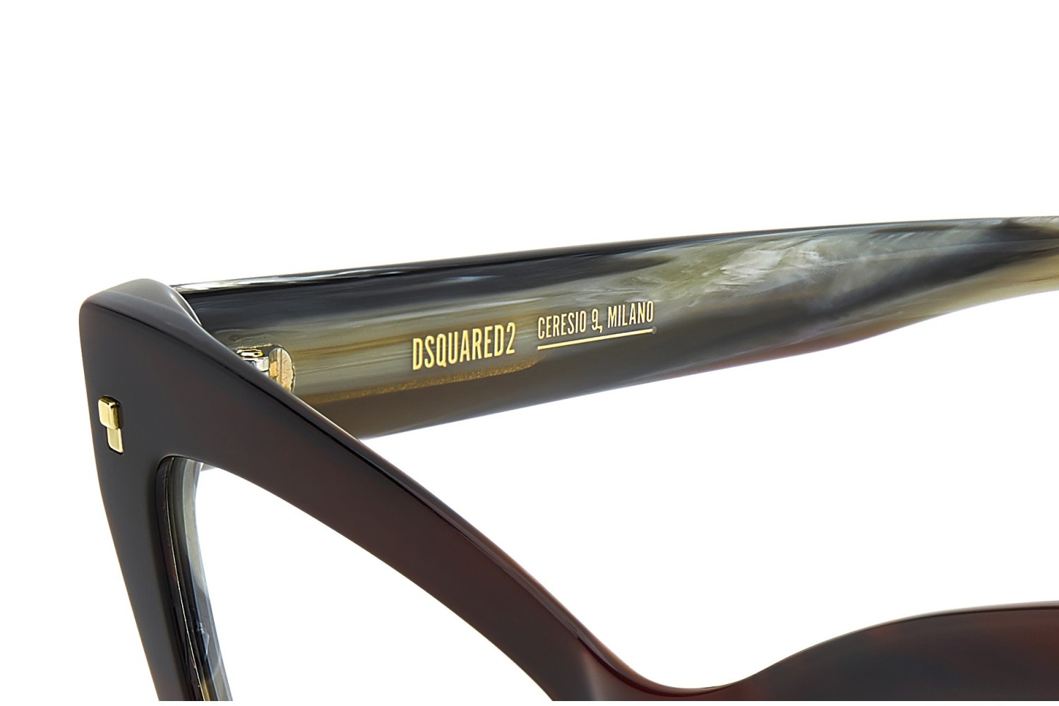 These DSQUARED2 optical glasses are made for fashion-forward women with eclectic style. In acetate, the timeless cat eye shape exudes unparalleled femininity. But there’s a surprise in store: the bold front has been carved out on the inside for lighter wearability. Whether in best-selling colours or the new two-tone multi-layer version, these glasses are decorated by the brand's original square rivets on the front and the metal D2 logo in relief on the sides.