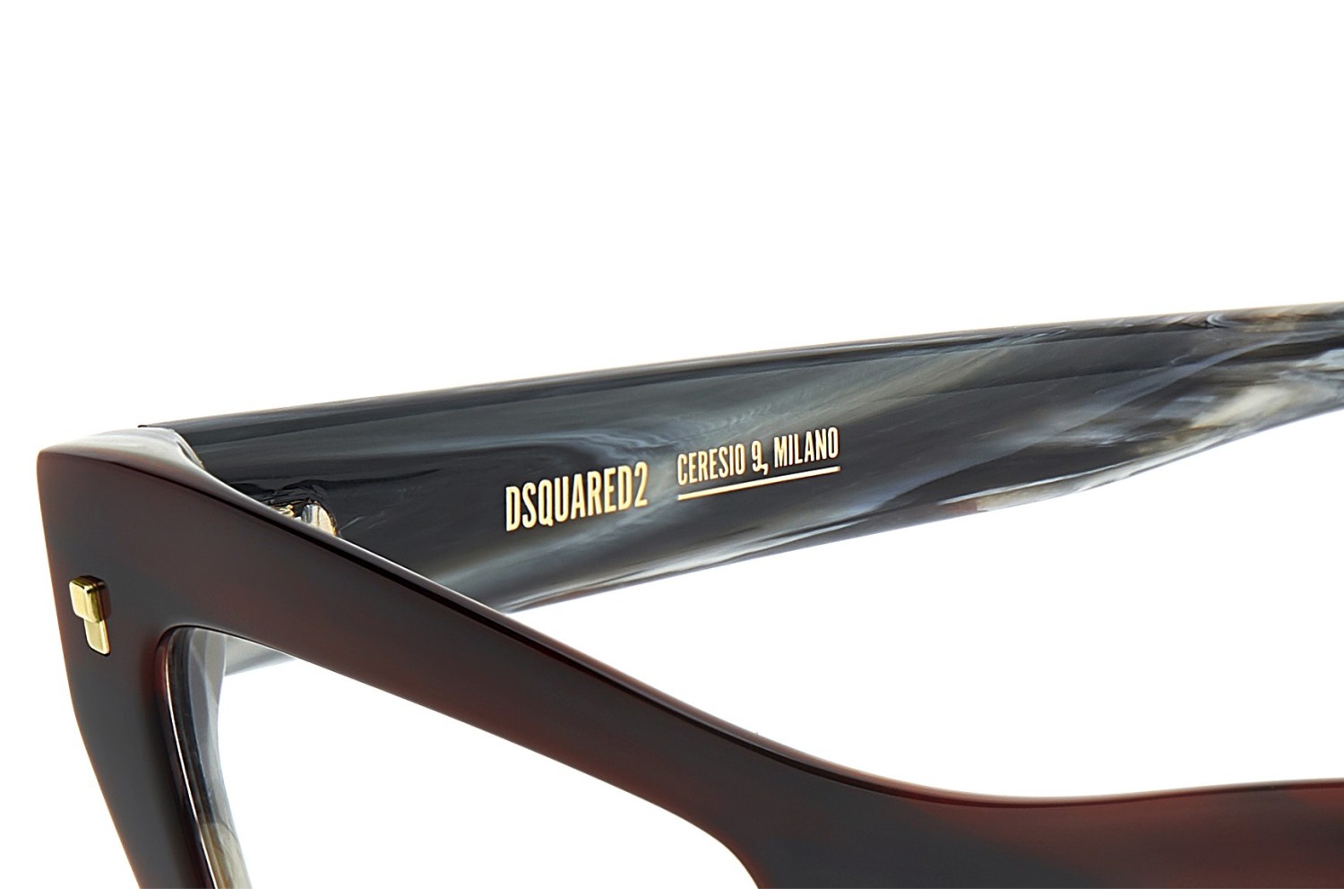 These DSQUARED2 optical glasses are made for fashion-forward women with eclectic style. In acetate, the timeless cat eye shape exudes unparalleled femininity. But there’s a surprise in store: the bold front has been carved out on the inside for lighter wearability. Whether in best-selling colours or the new two-tone multi-layer version, these glasses are decorated by the brand's original square rivets on the front and the metal D2 logo in relief on the sides.