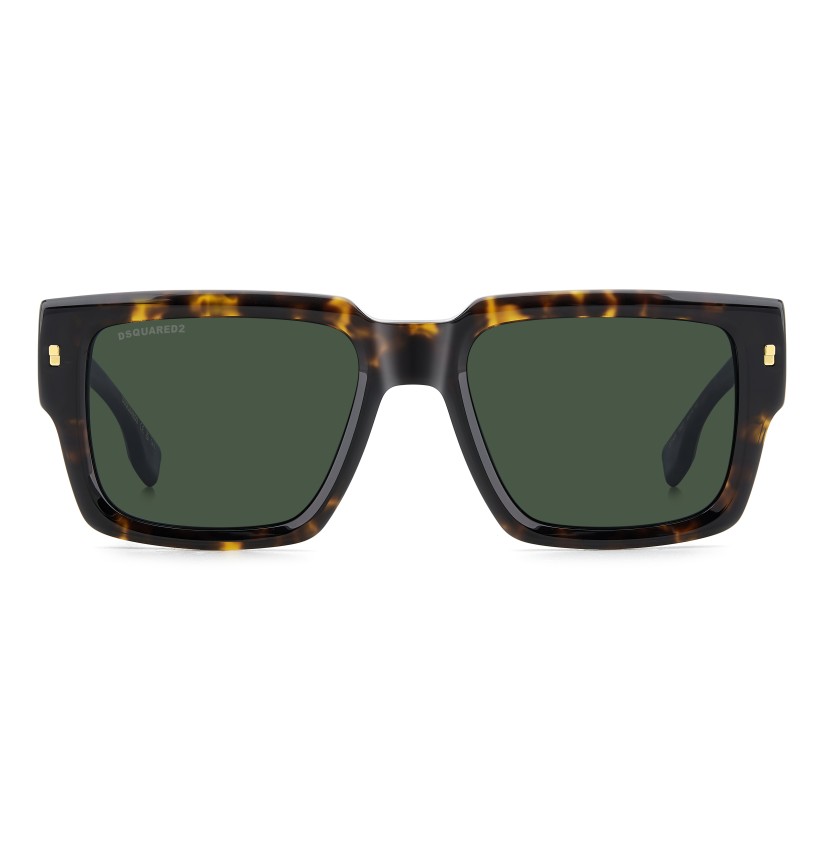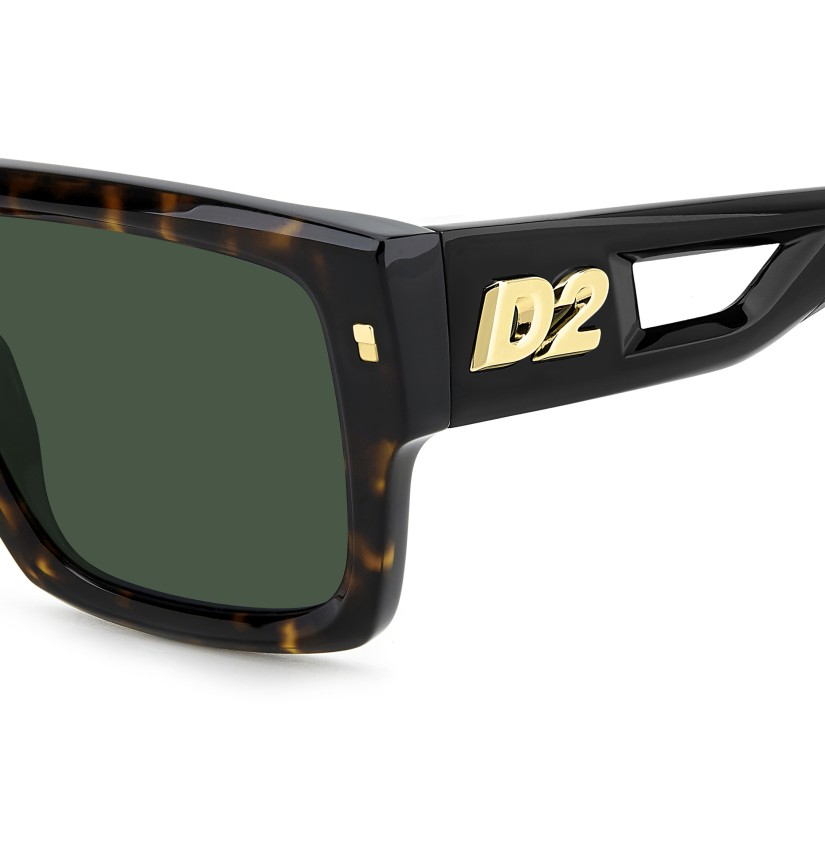 These DSQUARED2 sunglasses are a winning combination of glamorous and sporty details. This unparalleled mix can be attributed to the cut-out on the temples, matt rubber end tips and the new 3D metal ‘D2’ logo in relief - even more daring in the two-tone version. The rectangular acetate frames feature semi-bold proportions and multifaceted surfaces for a provocative look and a lightweight feel. Nothing short of stunning, they even can be fitted with prescription sun lenses.