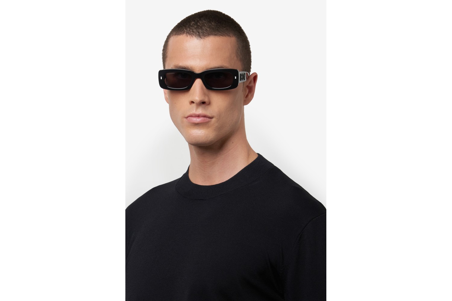 With these unisex sunglasses, DSQUARED2 disrupts dress codes, convention and perhaps even discretion. The trendsetting design is to thank, with a large ICON logo in relief on the temples for striking character. As a finishing touch, square rivets decorate the front, balanced by a maple leaf on the end tips.