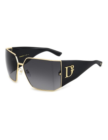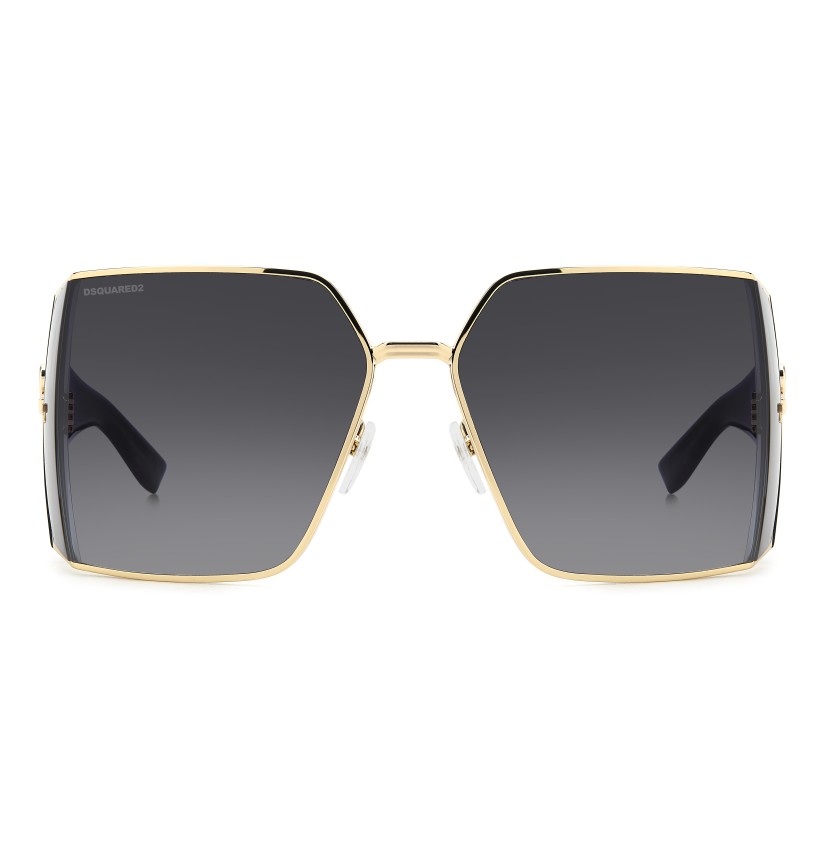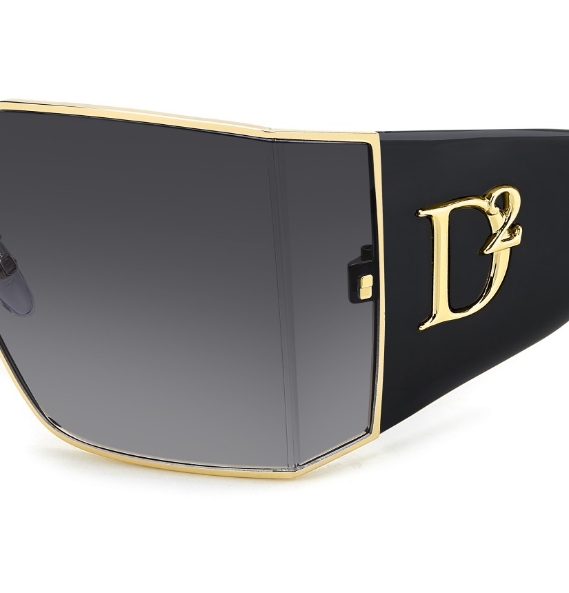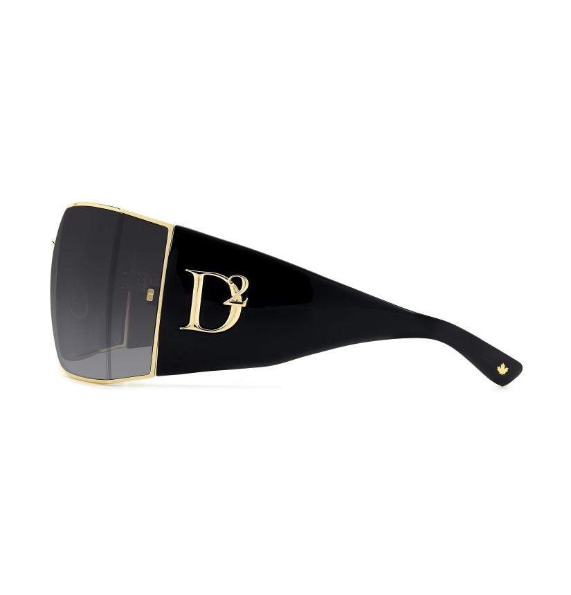 These sunglasses are already a collector's item, one of the most sophisticated women's eyewear looks from DSQUARED2 this season. The meticulous construction of the metal front is their signature, crafted into an angle at the sides to hold the wrap-around maxi lenses, trimmed by the iconic rivets. The nose pads are customised by the brand's maple leaf, also found on the end tips. The oversize D2 logo in relief trims this unique pair of glasses.