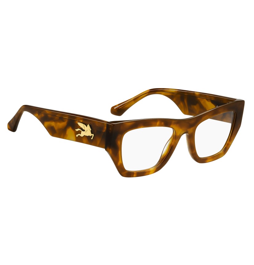 Refined and quintessentially ETRO, these optical glasses make a stunning statement with their bold shape, exquisite construction and the precious Pegaso detail that catches the light at all angles. They're made from premium acetate developed exclusively for the brand, finished using a milling process, and available in classic black, ETRO's burgundy, and Paisley-patterned variations that give fresh energy to heritage codes.