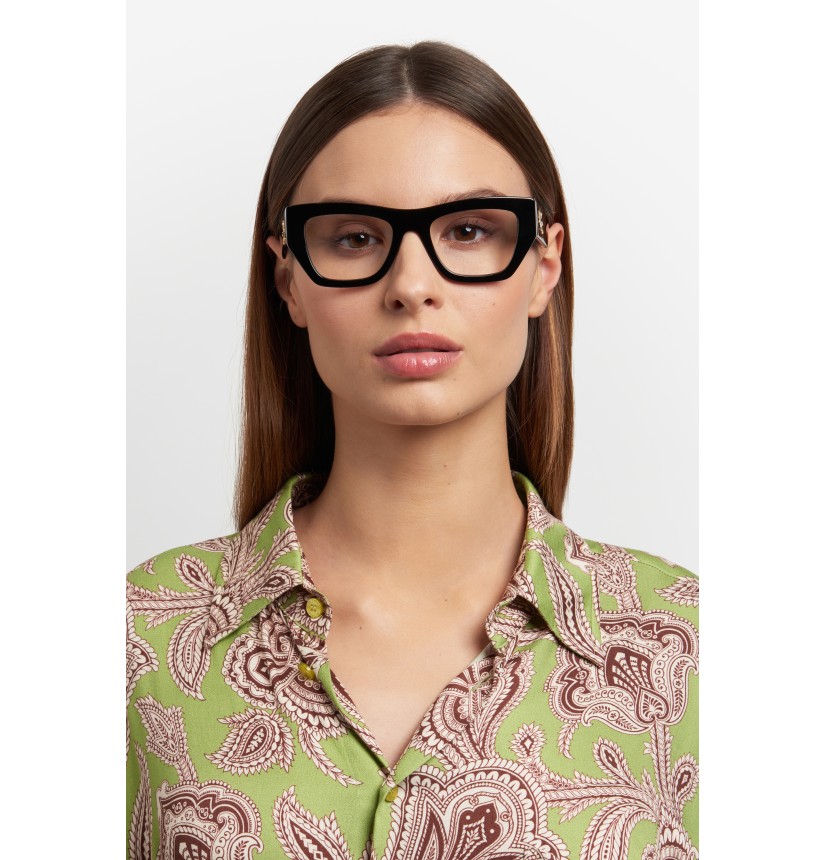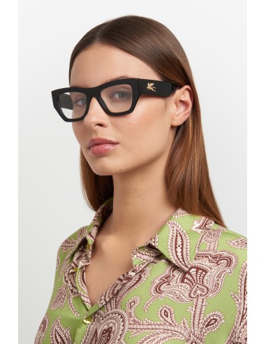 Refined and quintessentially ETRO, these optical glasses make a stunning statement with their bold shape, exquisite construction and the precious Pegaso detail that catches the light at all angles. They're made from premium acetate developed exclusively for the brand, finished using a milling process, and available in classic black, ETRO's burgundy, and Paisley-patterned variations that give fresh energy to heritage codes.
