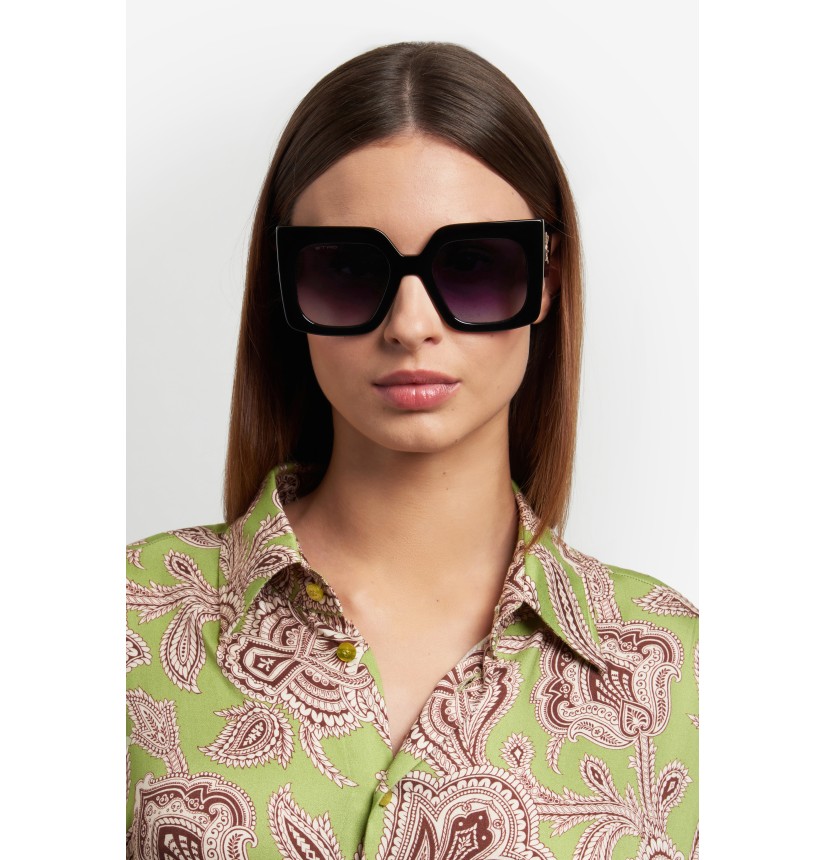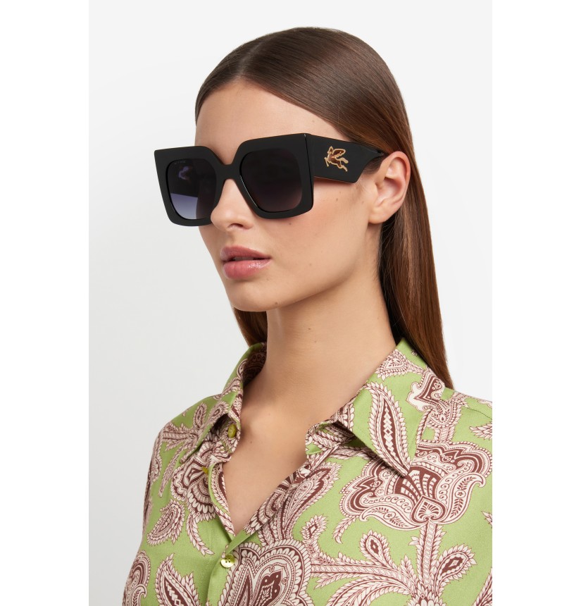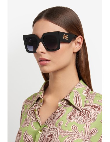 Refined and quintessentially ETRO, these sunglasses make a stunning statement with their bold shape, exquisite construction and the precious Pegaso detail – crafted from a single piece of metal to create an unexpected cutout effect. They're made from premium acetate developed exclusively for the brand, finished using a milling process, and available in classic black, ETRO's burgundy, and Paisley-patterned variations that give fresh energy to heritage codes.