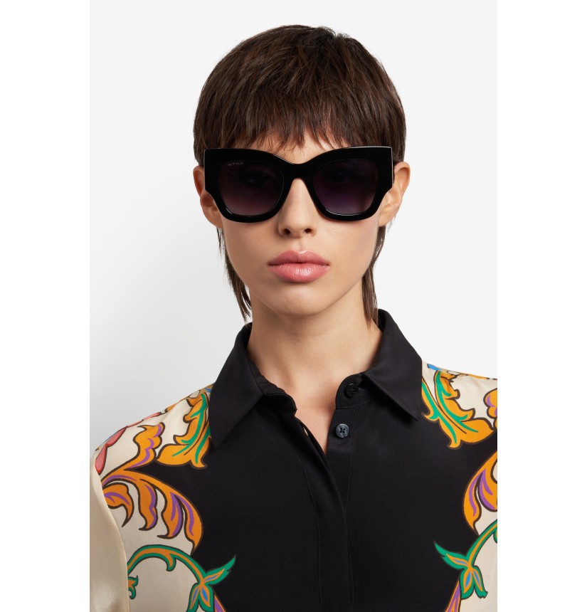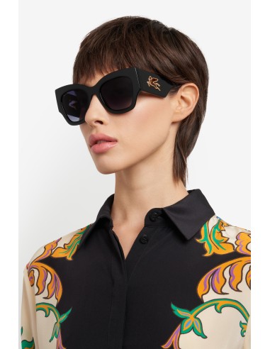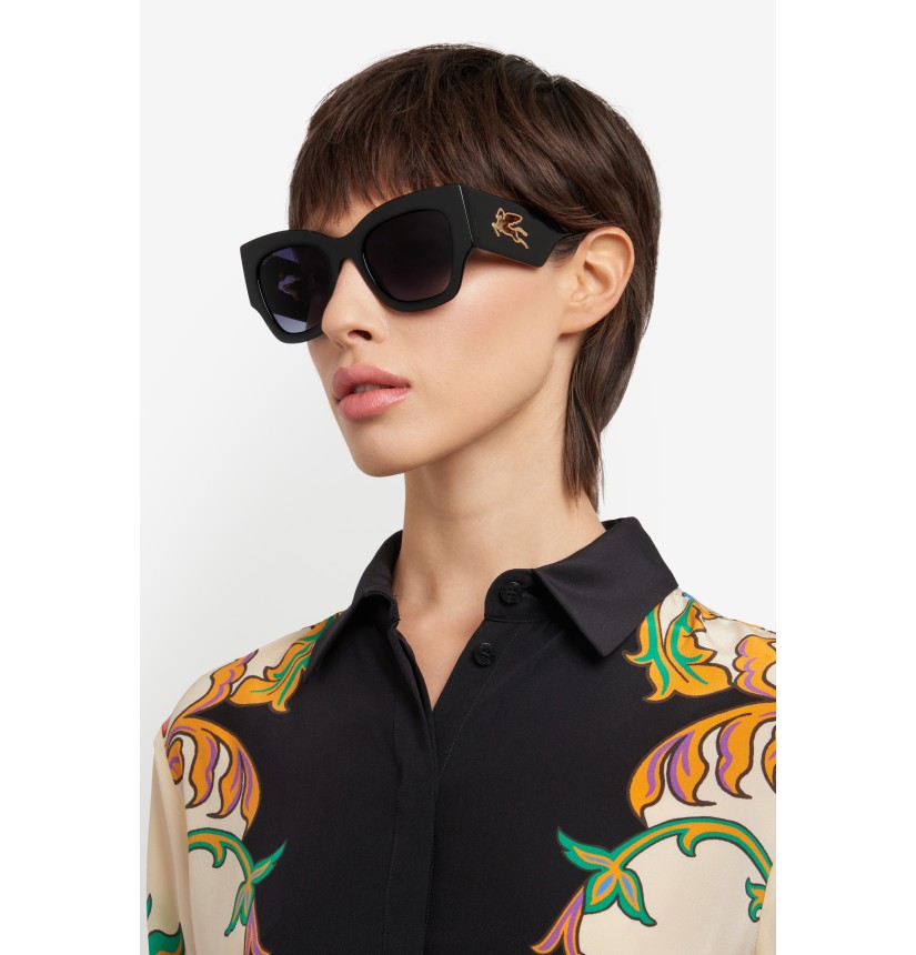 Refined and quintessentially ETRO, these sunglasses make a stunning statement with their bold shape, exquisite construction and the precious Pegaso detail – crafted from a single piece of metal to create an unexpected cutout effect. They're made from premium acetate developed exclusively for the brand, finished using a milling process, and available in classic black, ETRO's burgundy, and Paisley-patterned variations that give fresh energy to heritage codes.