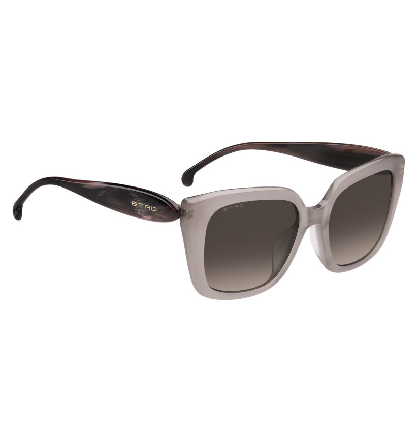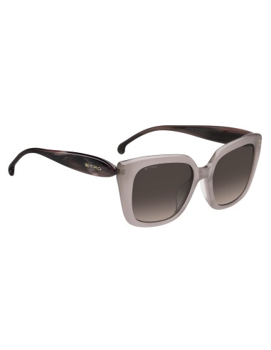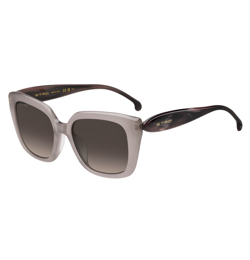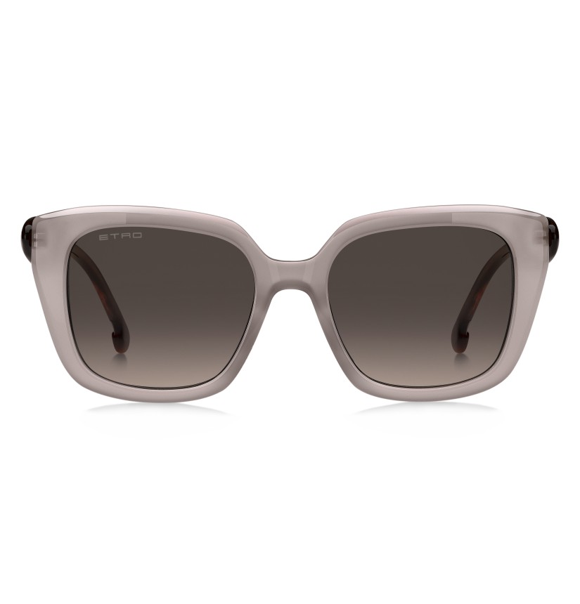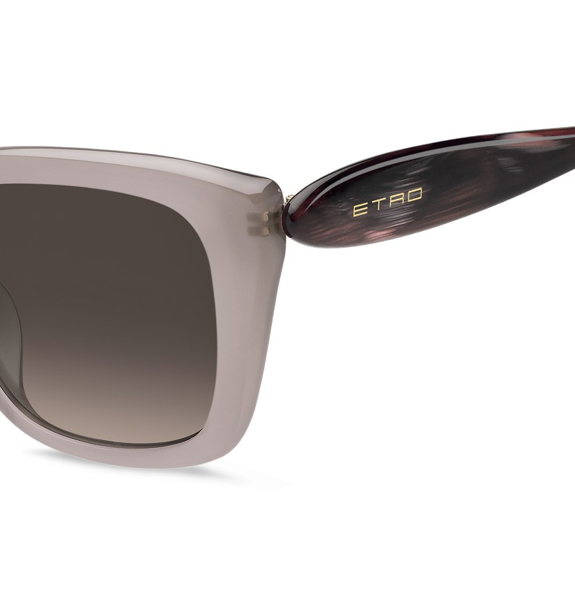 The epitome of the ETRO spirit, the "Etropaisley" eyewear line celebrates the brand's unmistakable motif in all its forms and chromatic variations. These sunglasses are reminiscent of a work of art with their softly curved geometric frame and custom wavy temples resembling the iconic Paisley shape. With an emphasis on delicate proportions and daring colourways, including irresistible two-tone variations, each style is accented with the ETRO logo and the brand's signature tips featuring the rounded geometry of the Paisley motif.