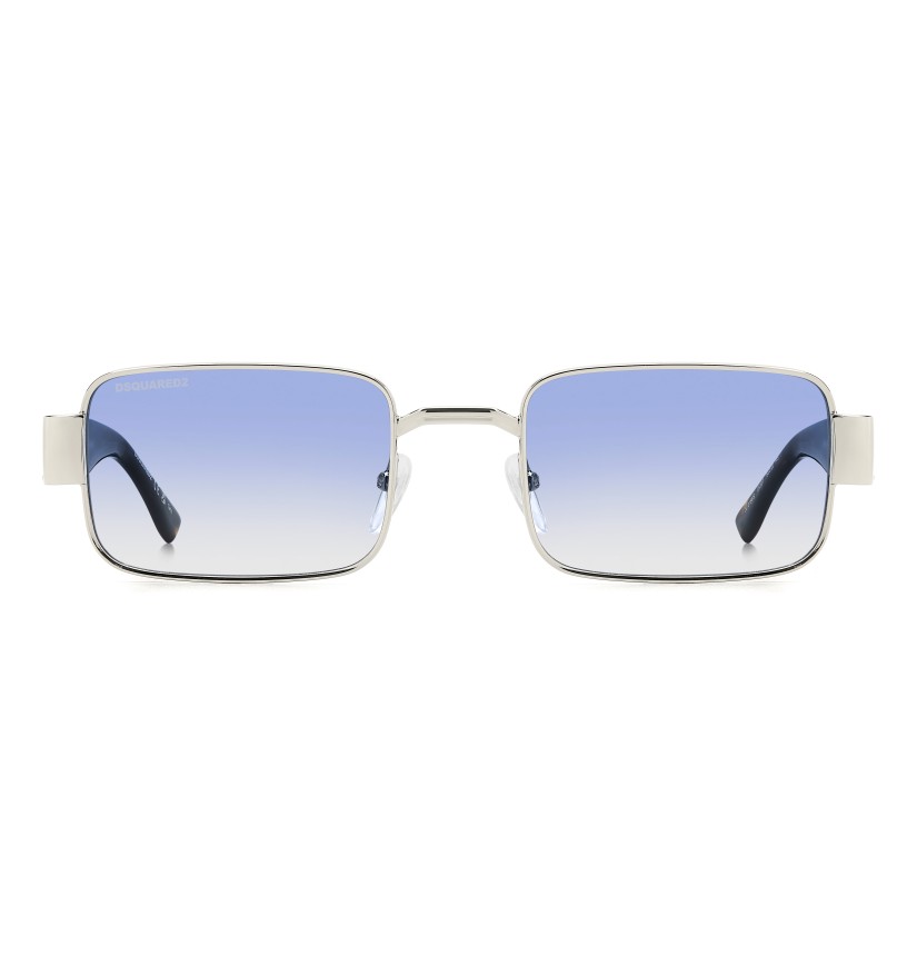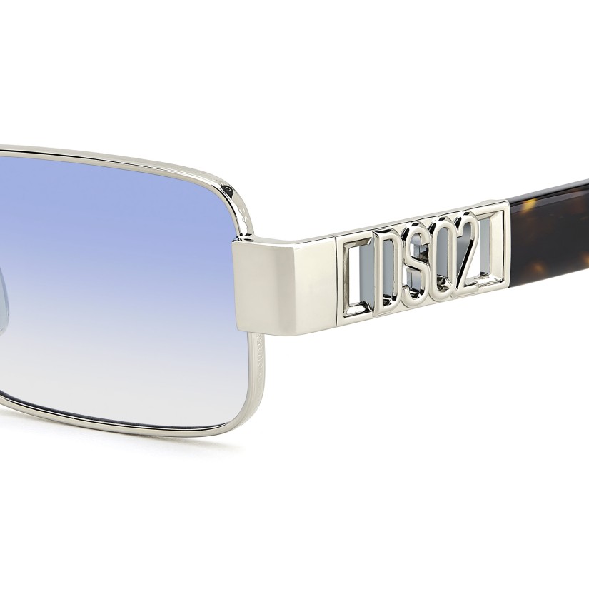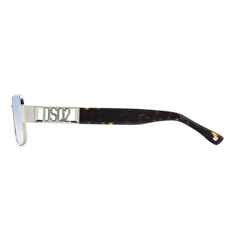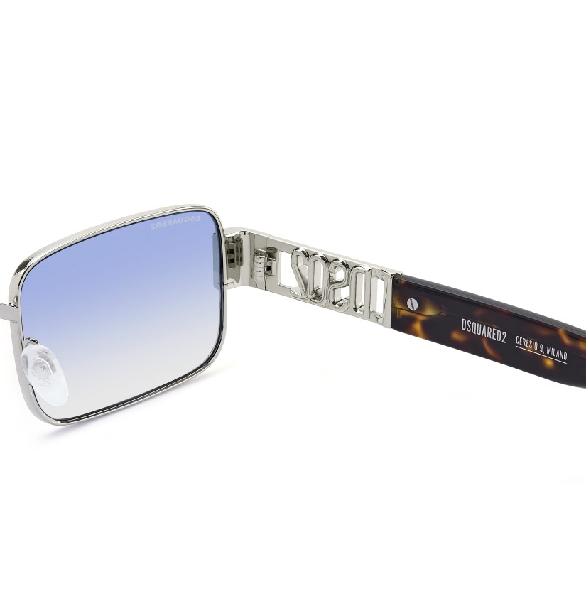These sunglasses bring signature DSQUARED2 style to metal rims with a cool rectangular shape. Brand-identifying details abound, starting with the cut-away DSQ2 logo on the temples. Less evident but no less exquisite, a repeated DSQUARED2 motif has been engraved on the outside of the rims. These sunglasses come in different colours, including a version with a contrasting black profile.