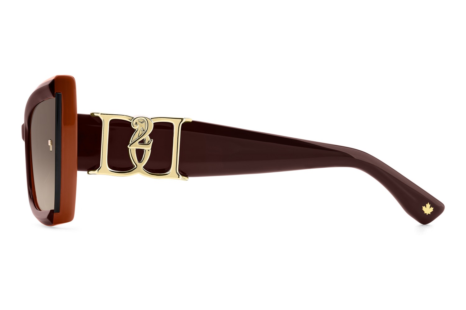 These DSQUARED2 sunglasses for women are finely detailed and sculpted. The frames are a masterpiece of design: decisively bold, they feature full volumes, lenses which are left open at the sides, and square rivets in metal. The new intertwined ‘D’ logo embraces the temples, set like a metal jewel onto their surface. This style comes in a heat-moulded version composed of two layers of acetate with contrast finishes.