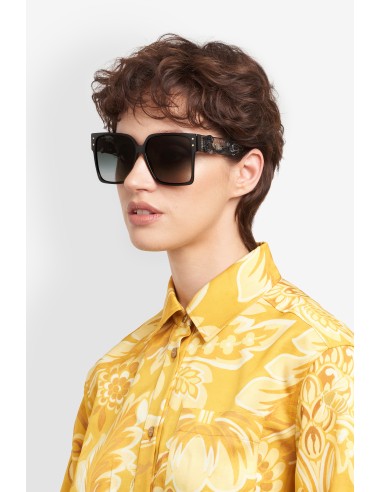 Channelling ETRO's innovative spirit rooted in refined craftsmanship, the "Etroblossom" optical glasses are at once elegant and uncompromising. Premium acetate rims frame a comfortable silhouette accented by flower-shaped screws on both sides. The tri-layer acetate temples are embellished with high-relief floral motifs in a nod to runway fabrics, while a visible wire-core and inlet logo enhance the transparent design. The geometrically sculpted end tips finish the design with a signature ETRO detail.