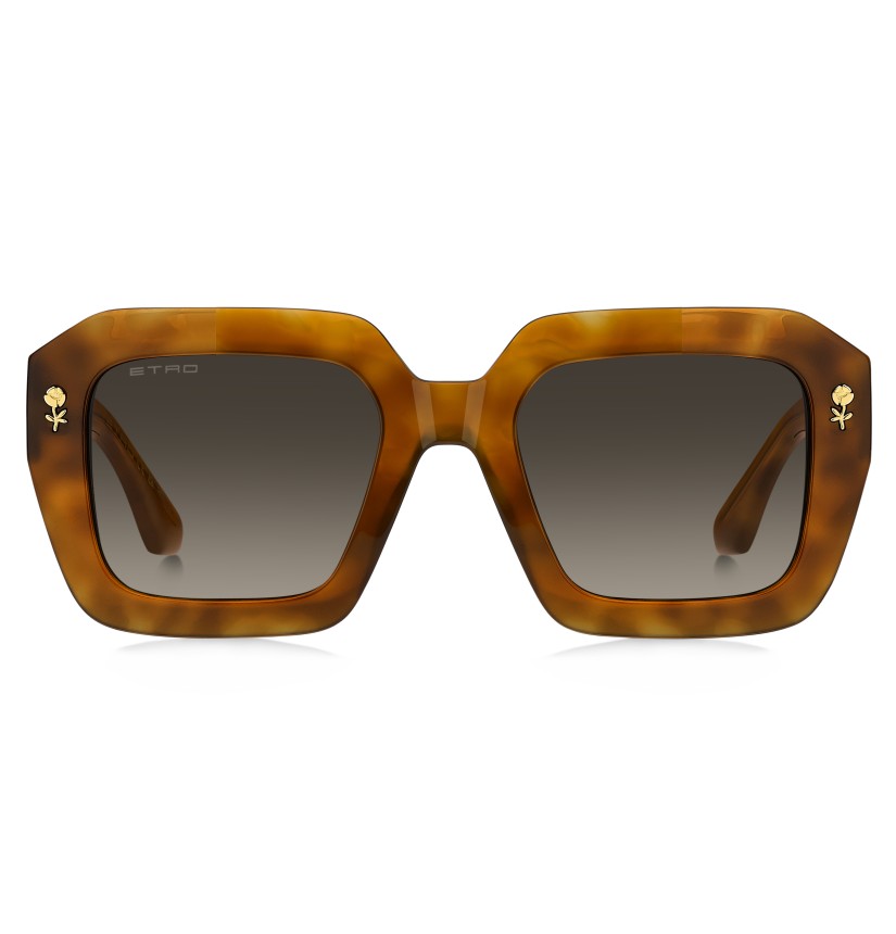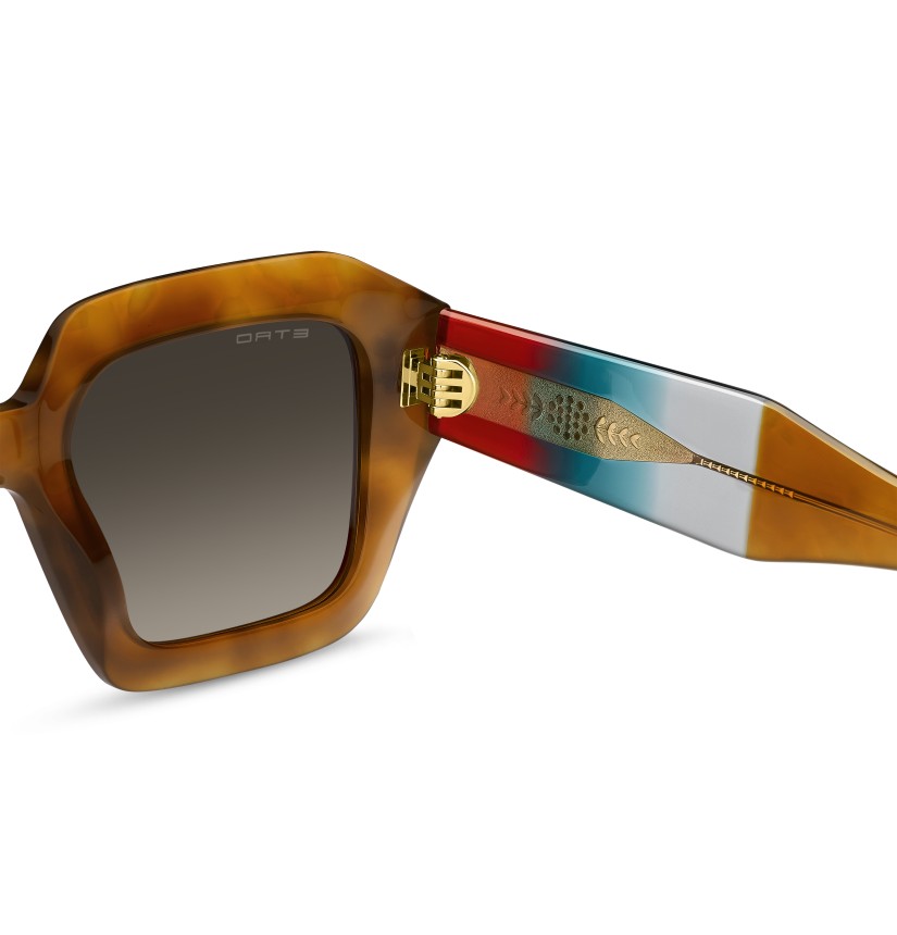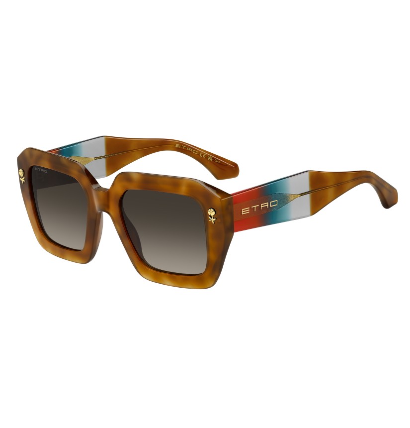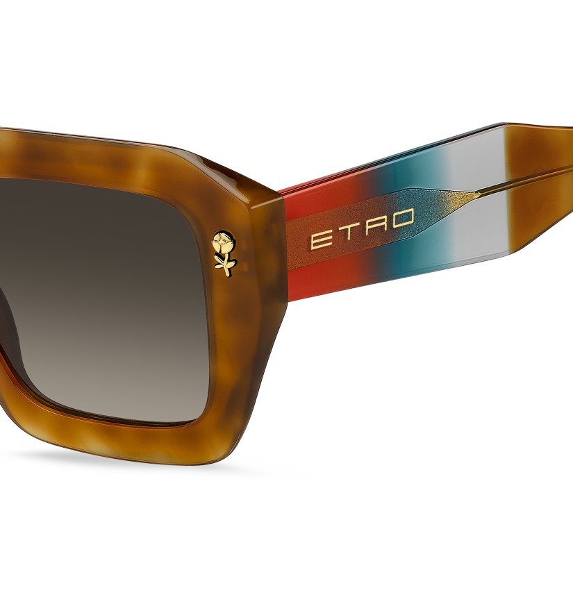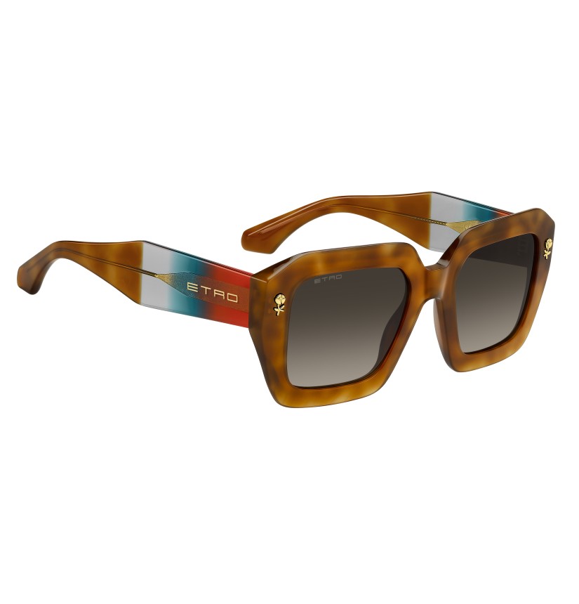 A dazzling celebration of ETRO’s vibrant identity, the "Color Stripes" sunglasses are designed to stand out. They are made with a bold acetate frame that's bevelled for a lighter feel and accented with a floral metal detail inspired by signature embroidery. Detailed with an inlet logo and finished with sculpted end tips, the wide temples reveal a graphic wire-core that adds refined structure.