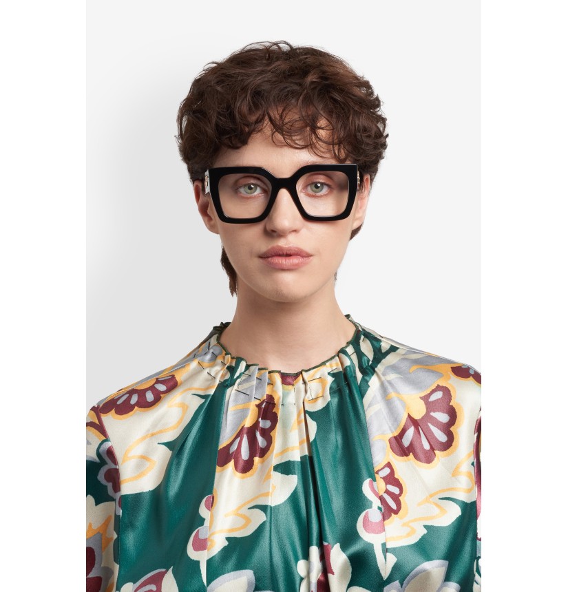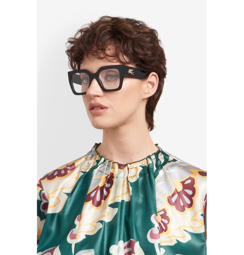 A striking tribute to ETRO’s signature codes, the "Etromania" optical glasses reimagine heritage through a contemporary lens. Made from custom acetate developed exclusively for Etro collections and finished using a special milling process, they feature bold temples with an eye-catching metal Pegaso logo. The statement silhouette is balanced by geometric end tips and a squared frame for unmistakable brand identity.