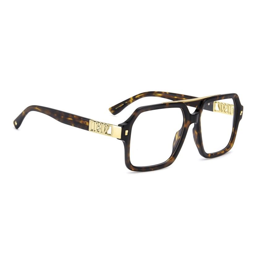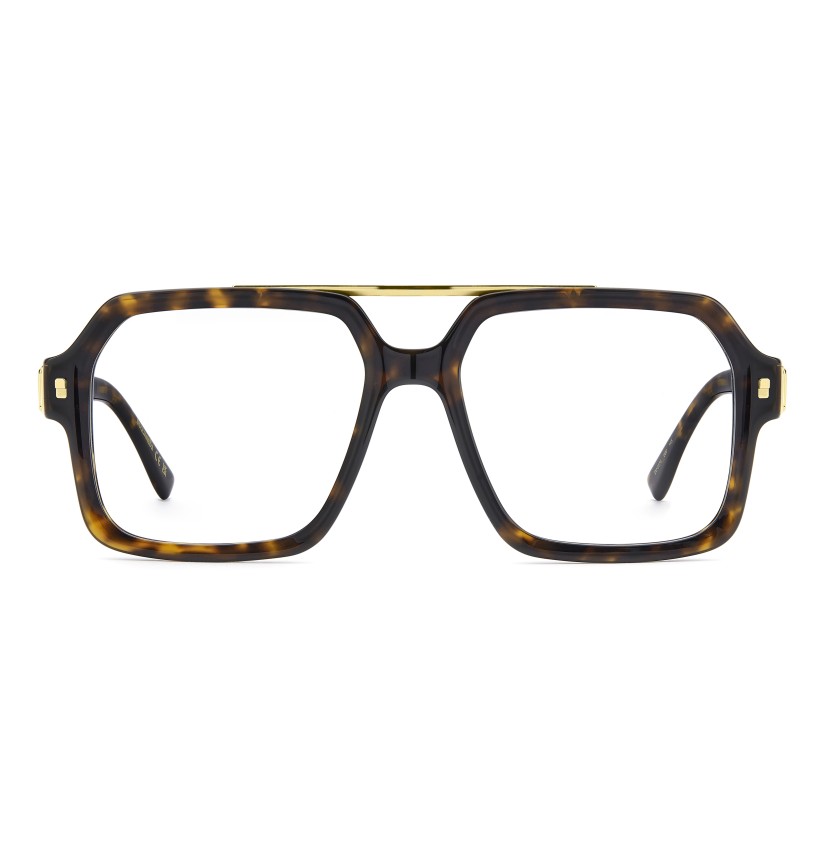 DSQUARED2 is known for its bold and recognisable eyewear. This pair of optical glasses is no exception, with an acetate structure trimmed by metal elements which give rise to a true fashion statement. They include a top bar connecting the square frames, the brand's signature double rivets, and the cut-out DSQ2 logo on the temples. Two colours are available: the black and palladium version is cool and unique, and sophistication is the watchword for the havana and gold option.