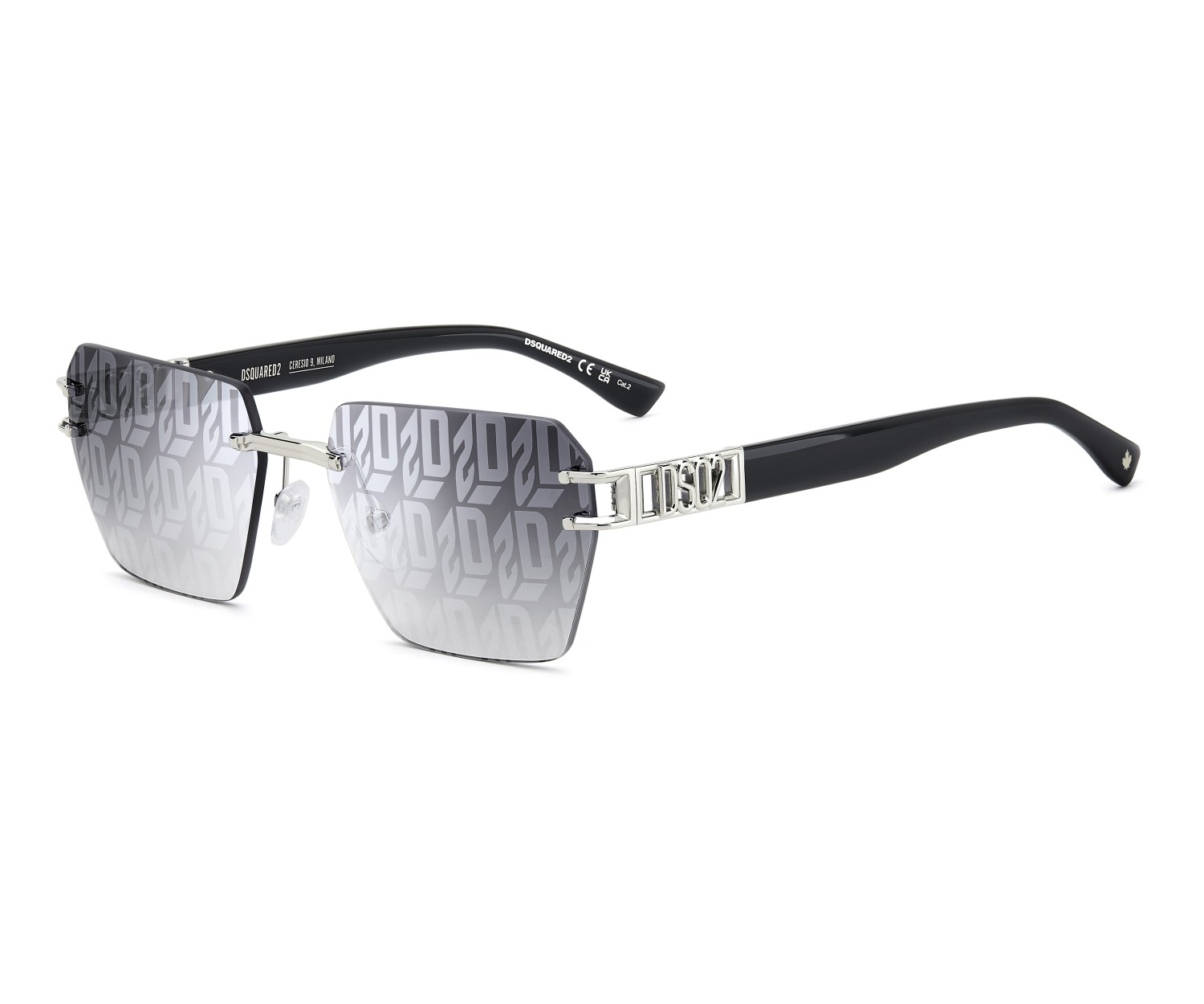 DSQUARED2 has brought a fresh twist to its best-selling sunglasses. The rimless shape of this style is iconic, one of the brand's most recognisable and an all-time best seller. A cut-out DSQ2 logo embellishes the temples, which are secured directly to the lens via double screws concealed by metal arms inspired by the staggered rivets of DSQUARED2. Available in multiple colourways, the version with a dual gold and palladium finish is notable, and the one with an all-over D2 print on the lenses is unforgettable.
