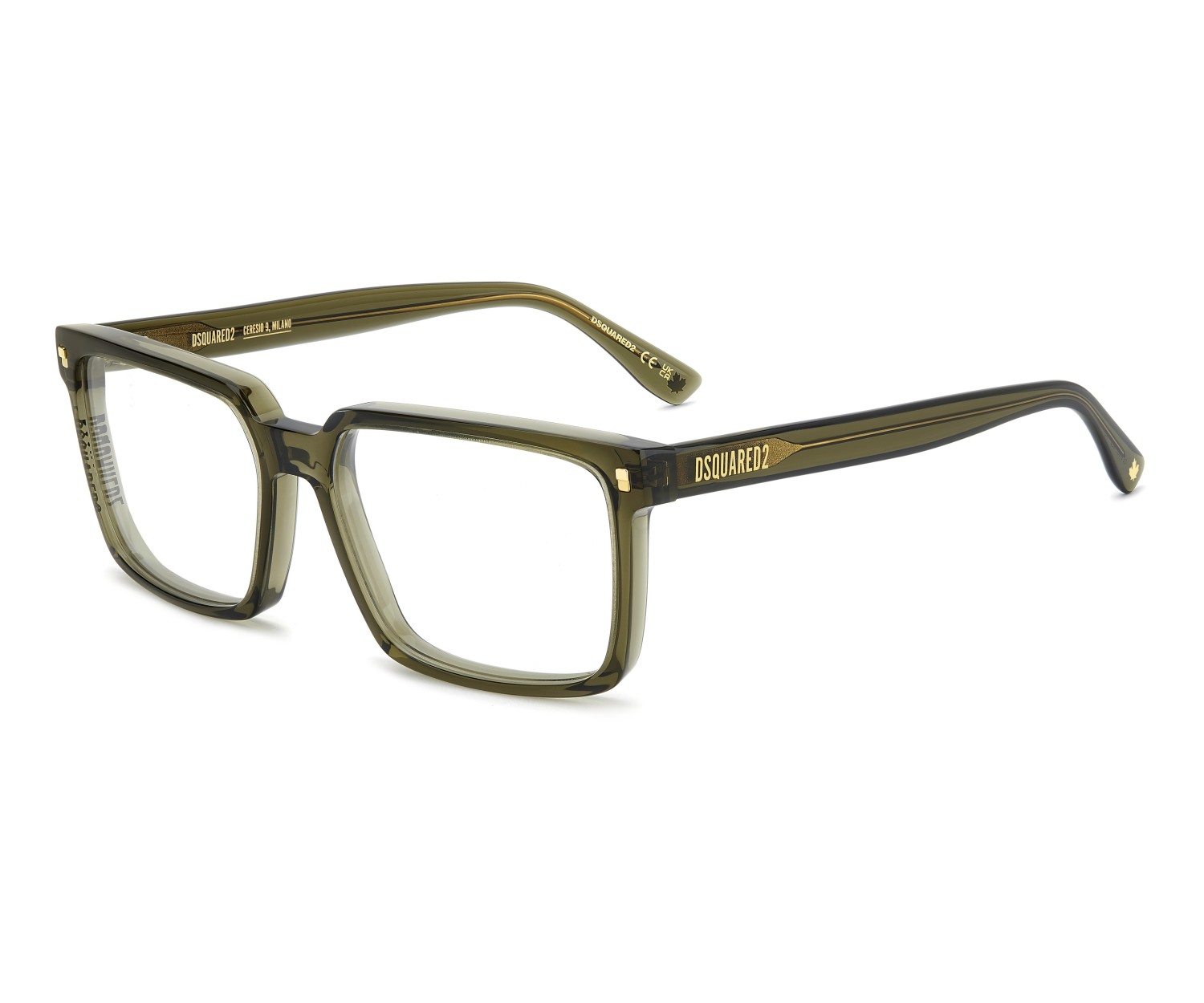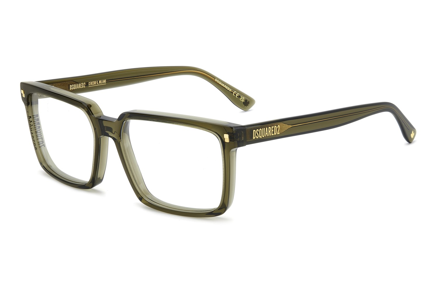 The new DSQUARED2 optical glasses in acetate have arrived. The proportions of the geometric frame are slender from the front, but thicker when seen from the side. This exclusive construction method results in a clean and easy-to-wear style which nonetheless maintains the distinctive touch of the brand. Also visible from the side is the DSQUARED2 logo, unexpectedly positioned on the right rim. The left side features the logo on the temple.