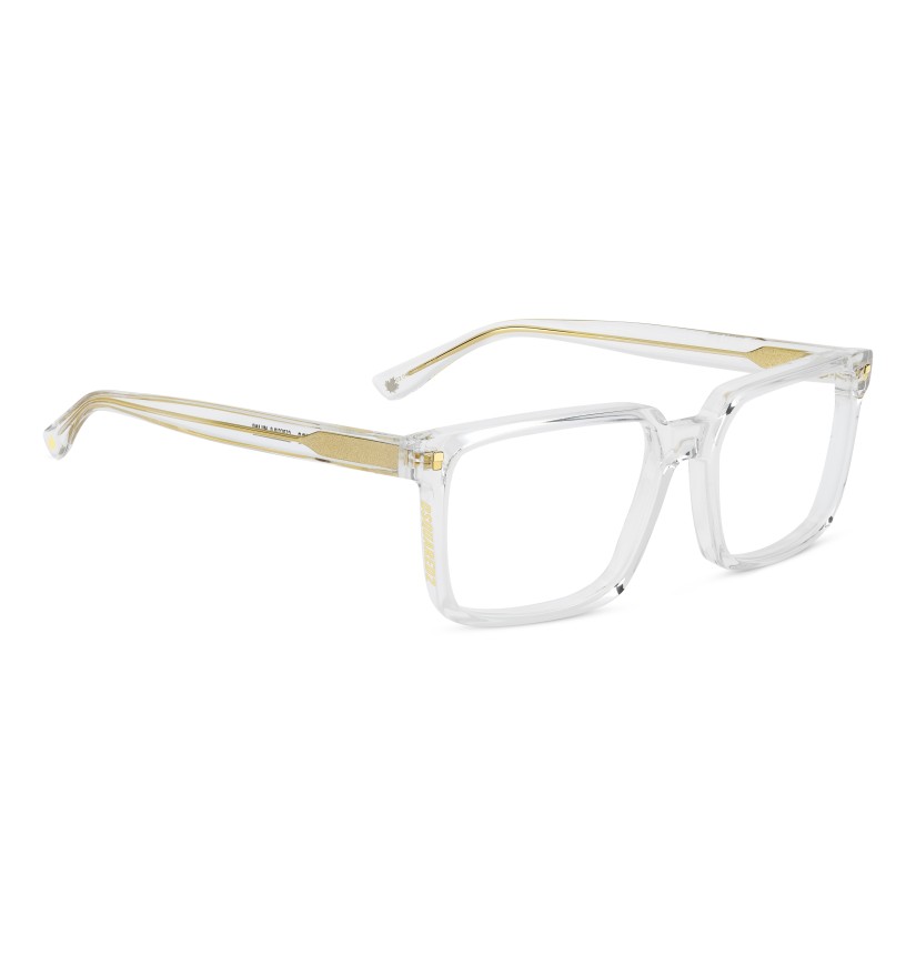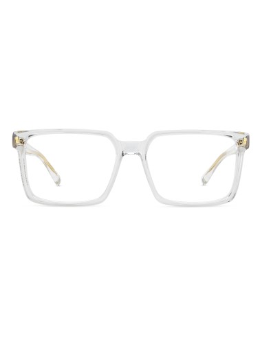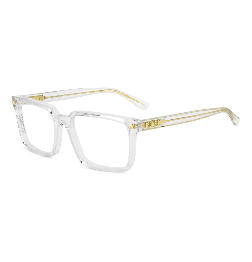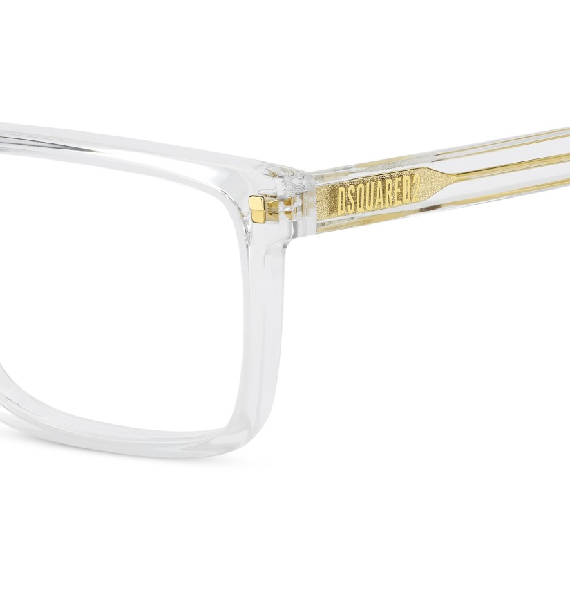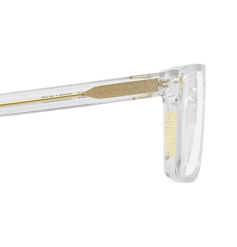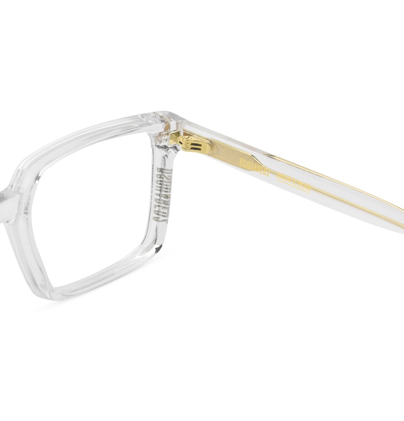 The new DSQUARED2 optical glasses in acetate have arrived. The proportions of the geometric frame are slender from the front, but thicker when seen from the side. This exclusive construction method results in a clean and easy-to-wear style which nonetheless maintains the distinctive touch of the brand. Also visible from the side is the DSQUARED2 logo, unexpectedly positioned on the right rim. The left side features the logo on the temple.