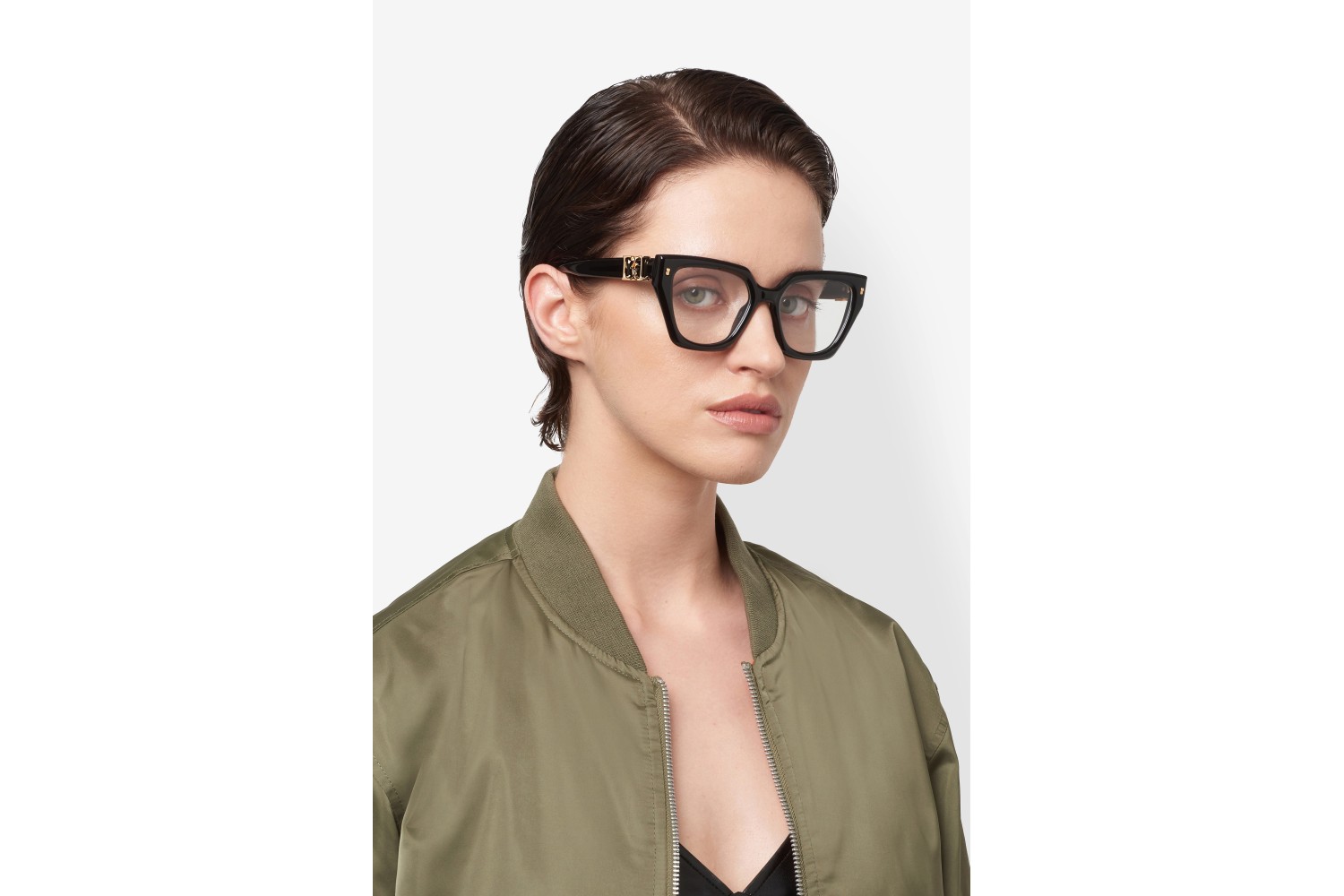 Alluring and chic, DSQUARED2 women's optical glasses are made to be worn with style every day. The cat-eye shape of these frames is the perfect expression of this philosophy, sculptural but lightweight thanks to bevelling. The interlocking double-D logo embraces the temple in a glamorous detail. The version in black is a must, while the havana option delivers textural sophistication. The heat-moulded version, with a glossy transparent layer on top of the acetate base, is sure to impress.
