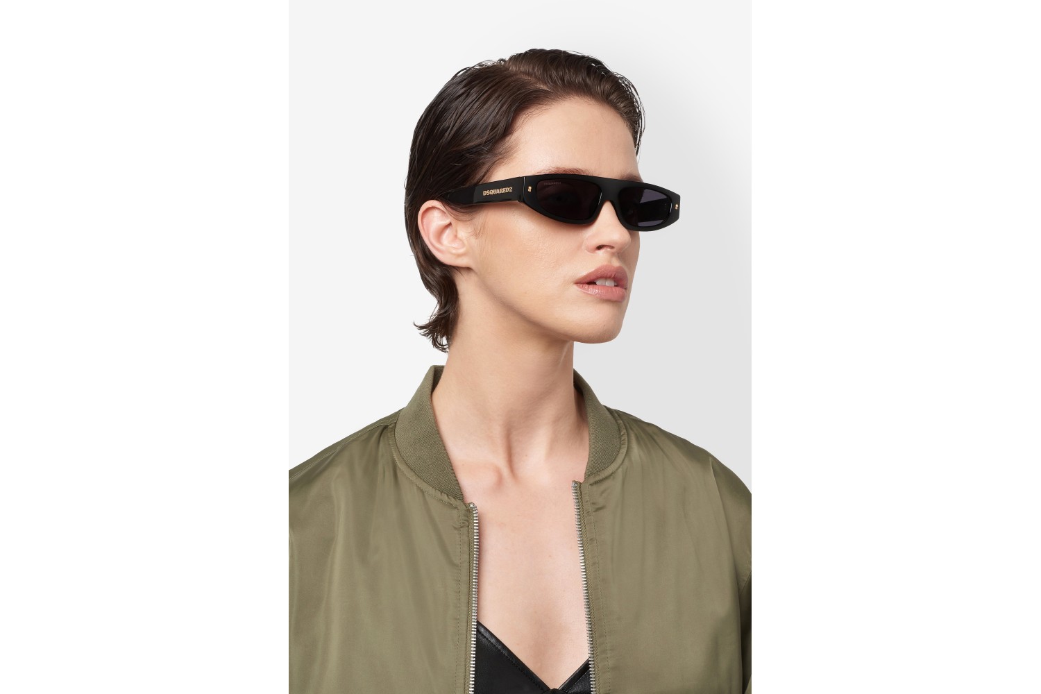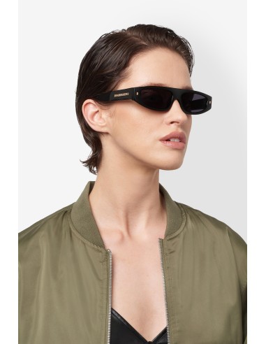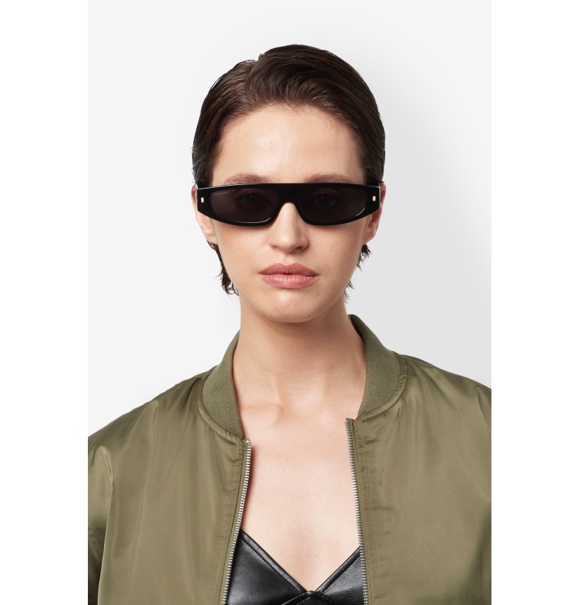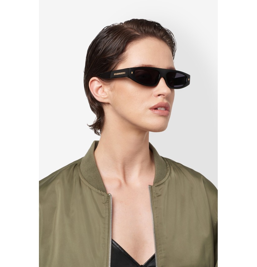 These women’s sunglasses by DSQUARED2 have ruled the runway and now they’re defining bold looks. The low and elongated shape of the front reflects the latest trends, enriched with a shimmering touch via the iconic DSQUARED2 rivets. The metal logo is seen on the temples. Whether in havana or black, both with gold-tone metal details, this style is iconic.