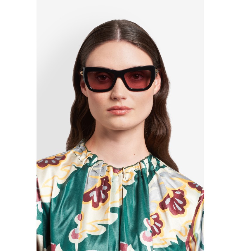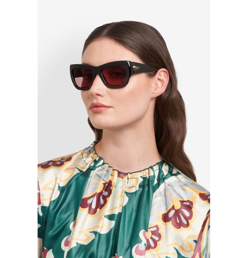 Evolving a heritage design, the "Etrodrop" eyewear line brings the Italian Maison's iconic motif into focus. These sunglasses are crafted with a softly curved geometric frame and comfortable temples resembling the refined Paisley shape, complete with an ornamental hinge detail inspired by ETRO's jewellery tradition. Laser-etched logo lettering on the tinted lenses and sculpted end tips are recognisable finishing touches.