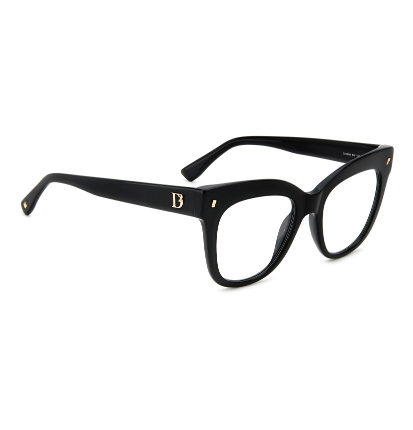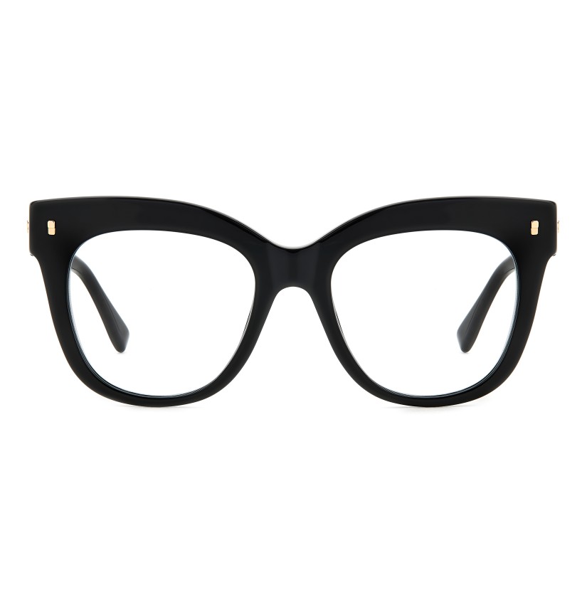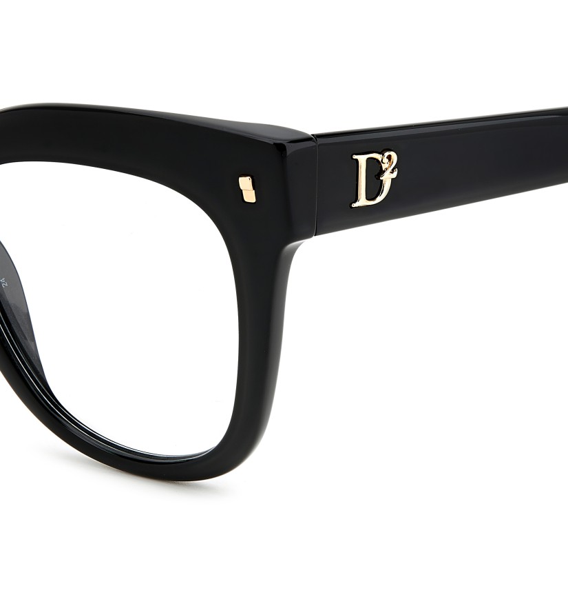 Immediately capturing one’s attention, these DSQUARED2 eyeglasses in acetate feature a bold, vintage front and the brand’s original metal rivets on the outer corners. The sophisticated, feminine shape of the frames is complemented by a raised D2 logo on the temples, inspired by the woman's accessories, and by end tips decorated with the brand's quintessential maple leaf.