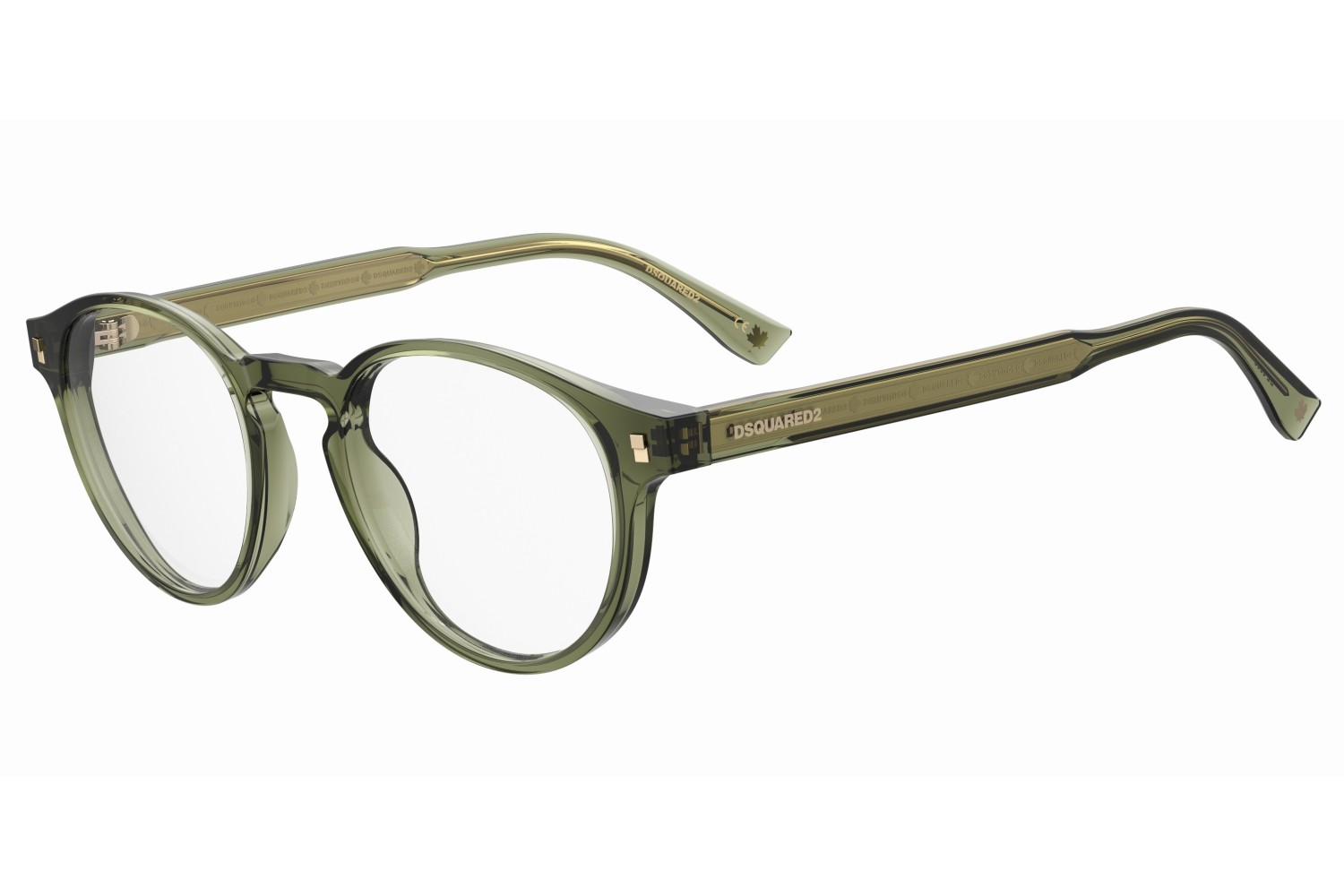 These semi-bold eyeglasses have been given a fresh twist thanks to the lighter proportions of the new acetate front. The metal core with the engraved DSQUARED2 'tape' can be seen through the original temples. The brand has also signed these men's glasses with an injected logo on the outer temple near the hinges, and with the must-have maple leaf on the comfortable end tips: distinctive features that convey truly unique design.