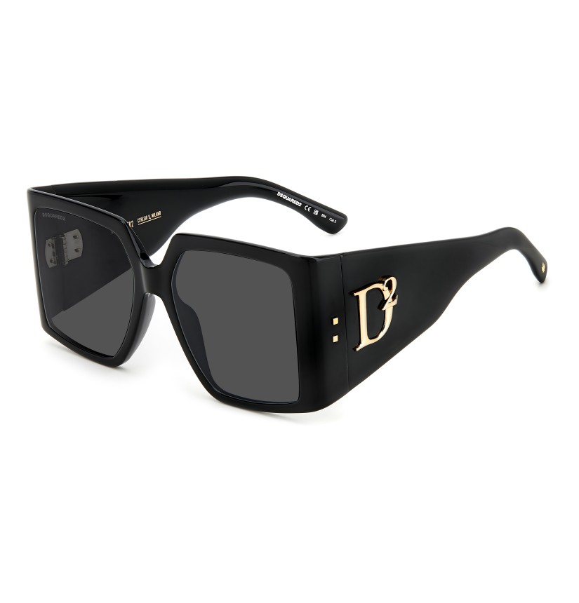 To create these unique sunglasses, DSQUARED2 has combined oversize square frames in slender acetate with subtle bezel finishing and bold temples trimmed by a macro raised D2 logo which was inspired by the brand's accessories for women. Other details bring the fashion house’s identity to the fore: two metal rivets near the hinge and the famous maple leaf on the end tips. The CERESIO 9, MILANO inscription customises the inside of the right temple, while ‘DSQUARED2’ appears on one of the sun lenses.