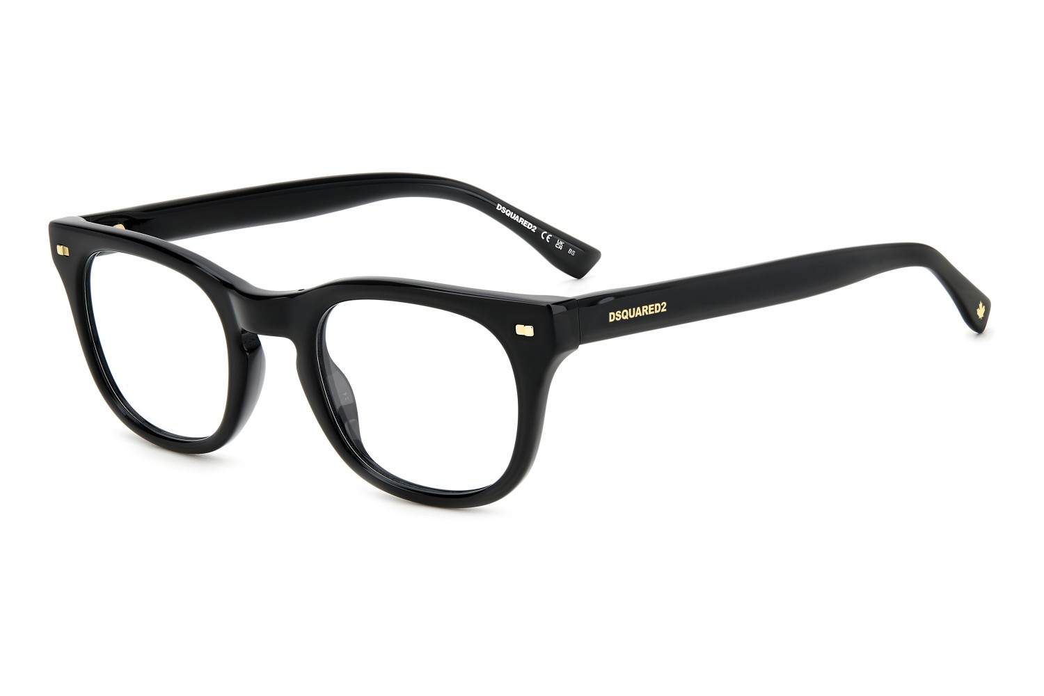 These semi-bold eyeglasses have been given a fresh twist thanks to the lighter proportions of the new acetate front. The metal core with the engraved DSQUARED2 'tape' can be seen through the original temples. The brand has also signed these men's glasses with an injected logo on the outer temple near the hinges, and with the must-have maple leaf on the comfortable end tips: distinctive features that convey truly unique design.