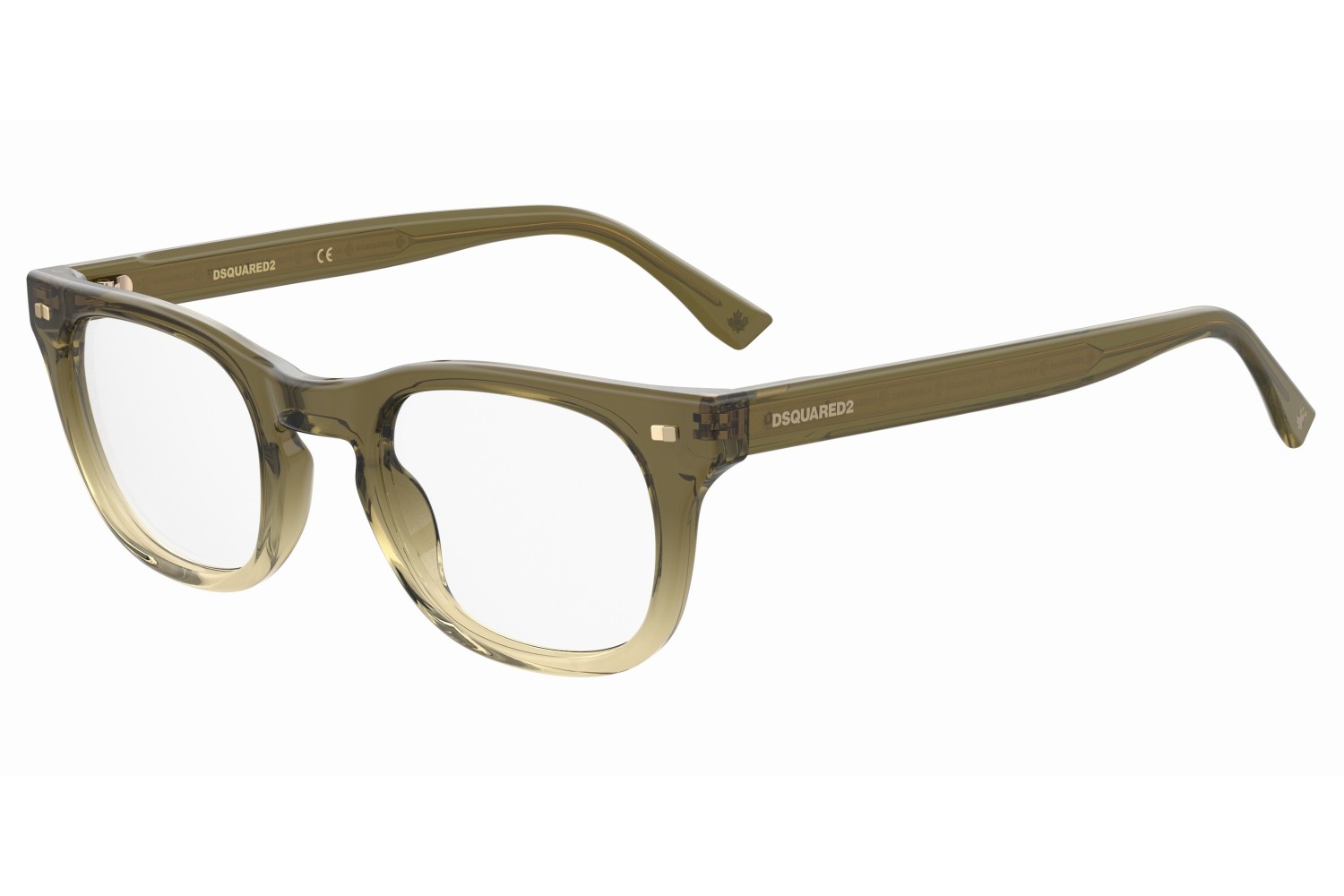 These semi-bold eyeglasses have been given a fresh twist thanks to the lighter proportions of the new acetate front. The metal core with the engraved DSQUARED2 'tape' can be seen through the original temples. The brand has also signed these men's glasses with an injected logo on the outer temple near the hinges, and with the must-have maple leaf on the comfortable end tips: distinctive features that convey truly unique design.