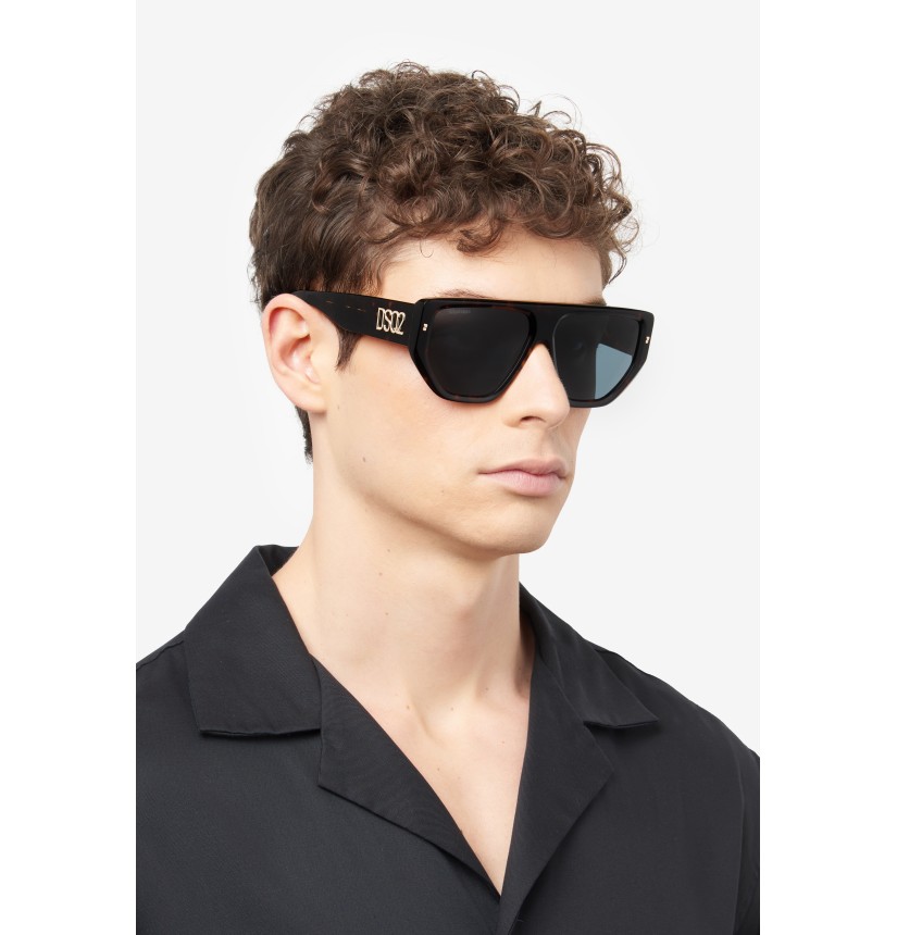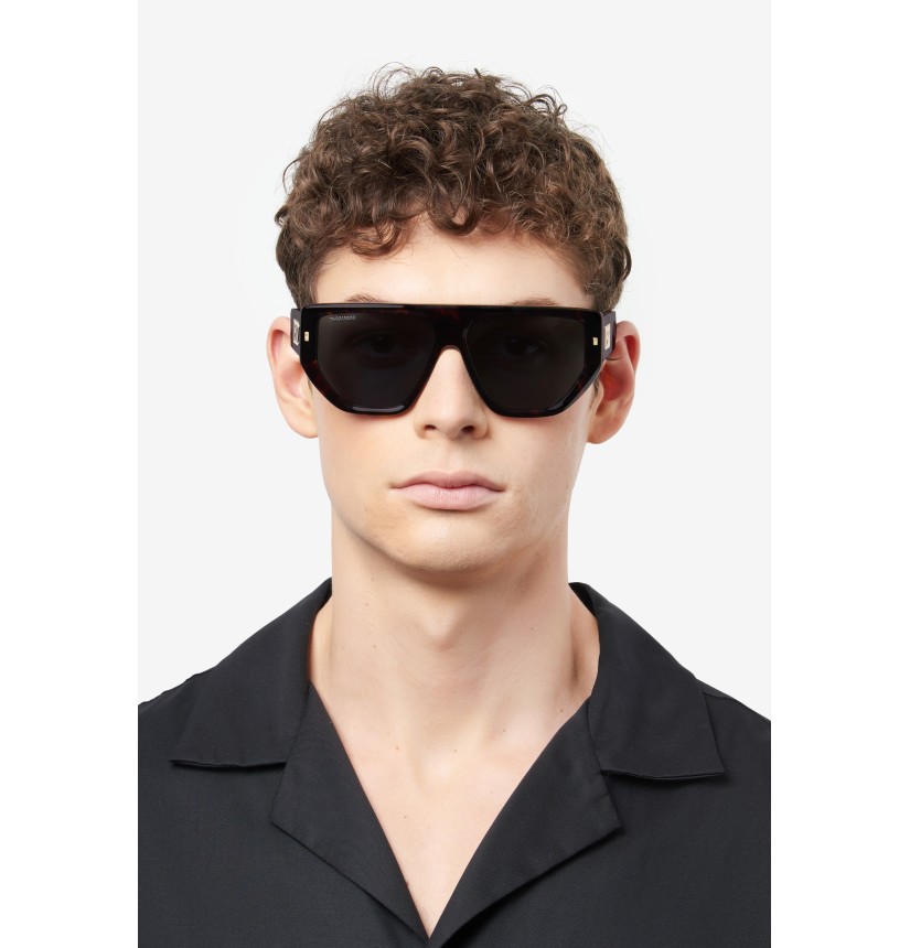 These men's sunglasses have bold temples trimmed by a raised DSQ2 emblem and the CERESIO 9, MILANO inscription, plus the must-have maple leaf on the end tips. Their exclusive shape was inspired by the brand's accessories, and is enhanced by the bold acetate front with iconic metal rivets, giving these glasses plenty of personality.