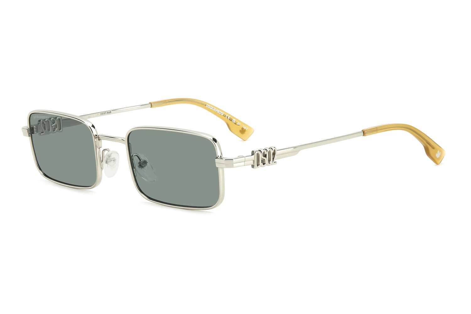 The stars of bold outfits, these DSQUARED2 sunglasses boast distinct frames that are rich in cult details. A metal front, a low rectangular shape, and adjustable nose pads: every compositional choice has been made in the name of an impeccable fit. The metal temples have been finely detailed with the sculpted DSQ2 wordmark as the protagonist. The brand's symbolic maple leaf is a secret accent, appearing on the nose pads and end tips.