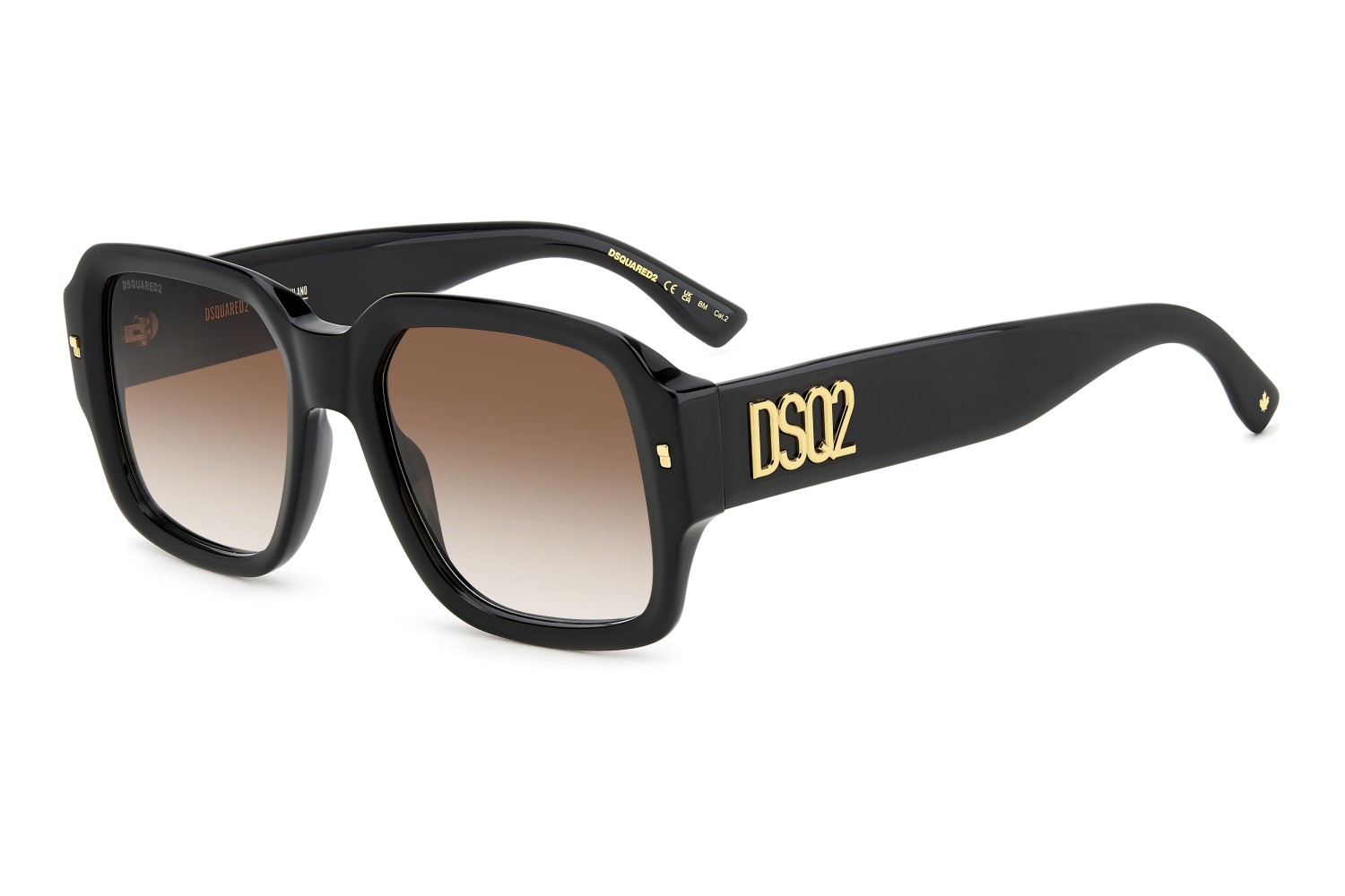 Cool glamour is an essential component of these men's sunglasses and the entire DSQUARED2 universe. The acetate frames are bold, generous, multifaceted, and surprisingly lightweight. Details that identify the brand make these glasses legendary: the metal rivets on the front, the raised DSQ2 maxi logo, the CERESIO 9, MILANO reference on the inside of the temples, and the maple leaf on the end tips.