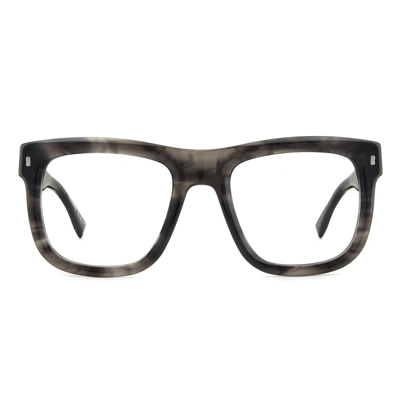 Cool glamour is an essential component of these men's eyeglasses and the entire DSQUARED2 universe. The acetate frames are bold, generous, multifaceted, and surprisingly lightweight. Details that identify the brand make them legendary: rivets on the front, a raised DSQUARED2 logo, the CERESIO 9, MILANO reference on the inside of the temples, and the maple leaf on the end tips.