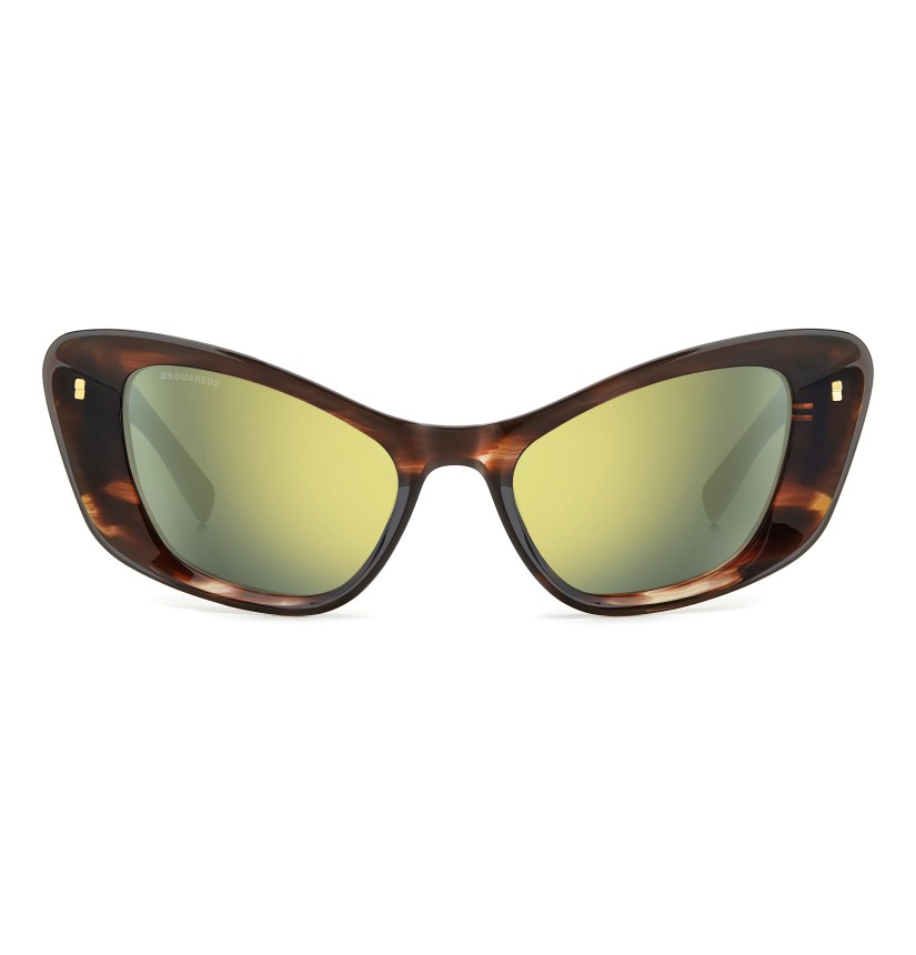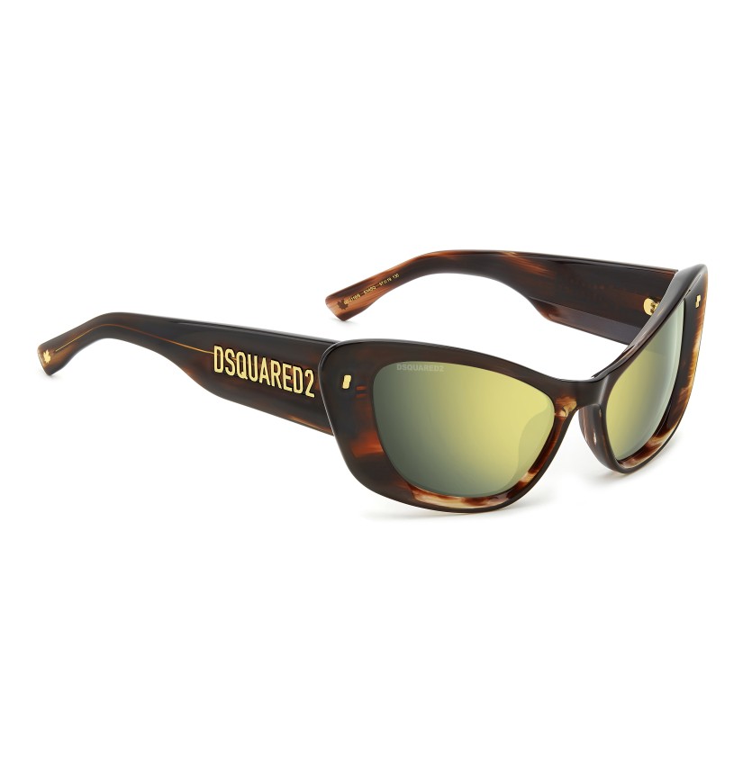These extra-coverage DSQUARED2 sunglasses were plucked straight from the runway. The cat-eye shape makes them epic, reinterpreted in a contemporary key. They’re even more incisive with mirrored lenses. Balancing vintage and cutting-edge, this style has maxi temples with the DSQUARED2 logo and tapered end tips trimmed by the brand's maple leaf symbol. The colour palette includes pastel tones with glitter.