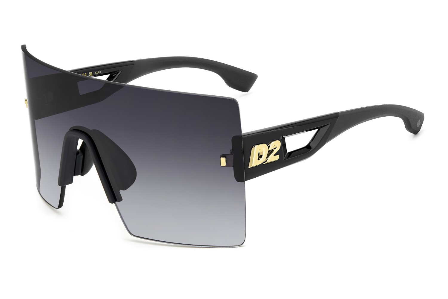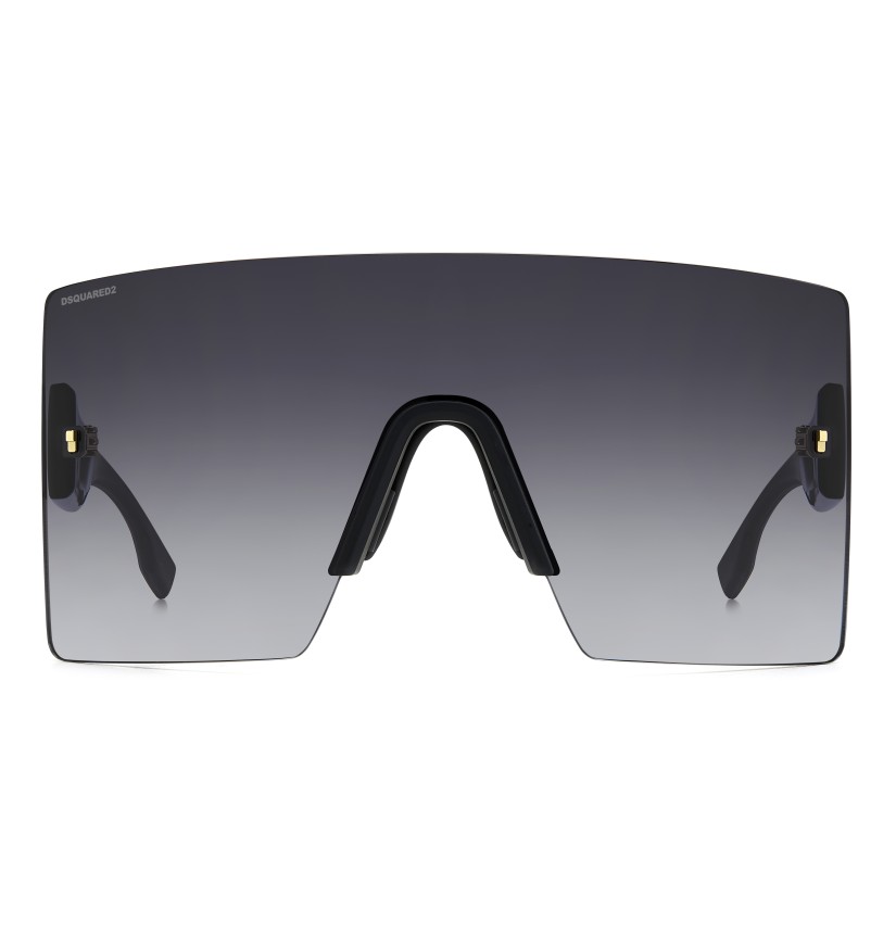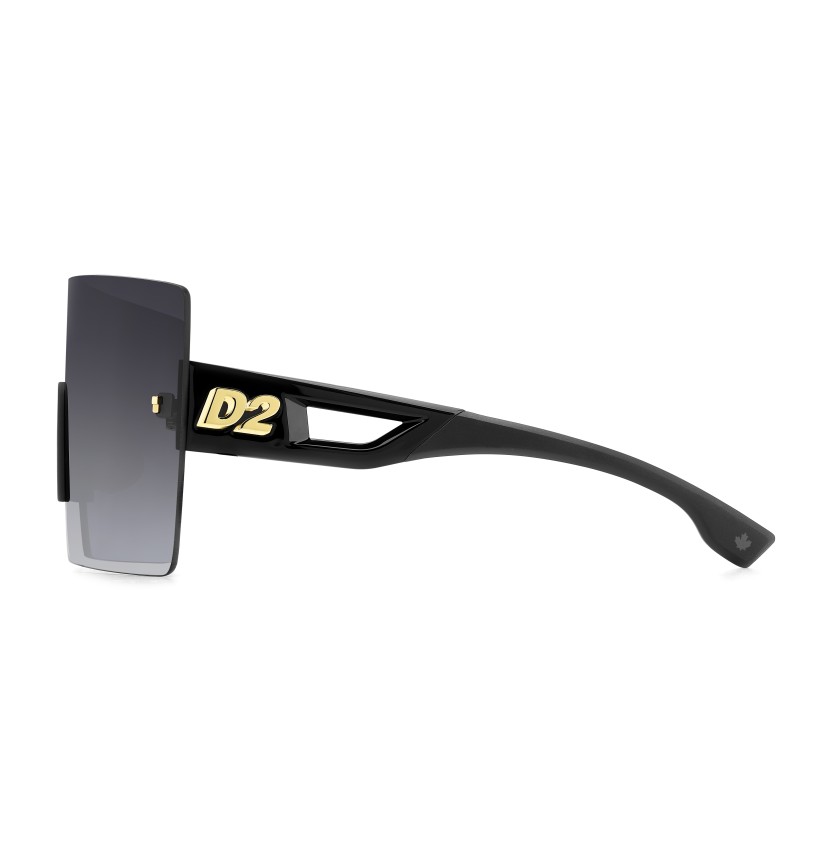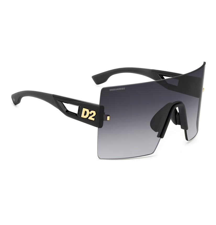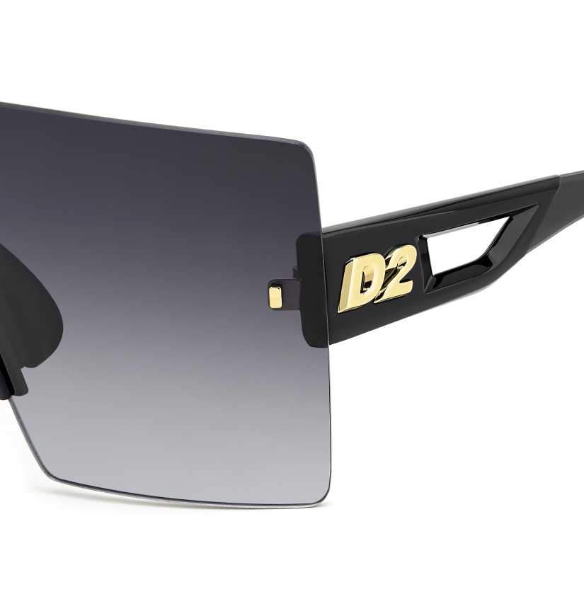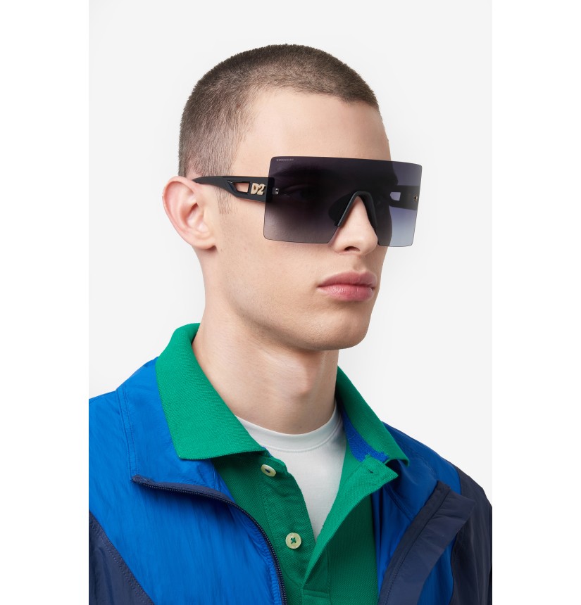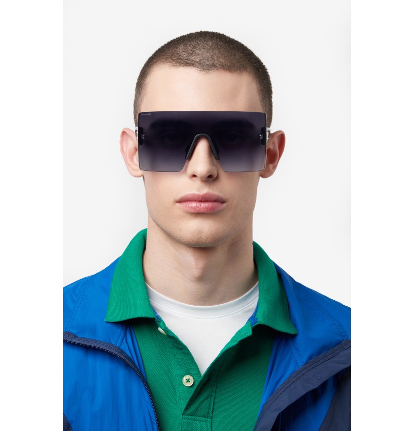 The DSQUARED2 world of fashion is all about breaking the rules, and these men’s sunglasses are proof. The avant-garde attitude is found in the wrap-around mask front, rimless and decorated with iconic DSQUARED2 metal rivets. The cut-out temples borrow from the world of sports, trimmed by the new D2 metal logo in relief, given 3D styling for an unforgettable look. The adjustable silicone nose pads and the new injection-moulded rubber end tips in two colours offer stability even when on the move, exclusive parties being no exception.