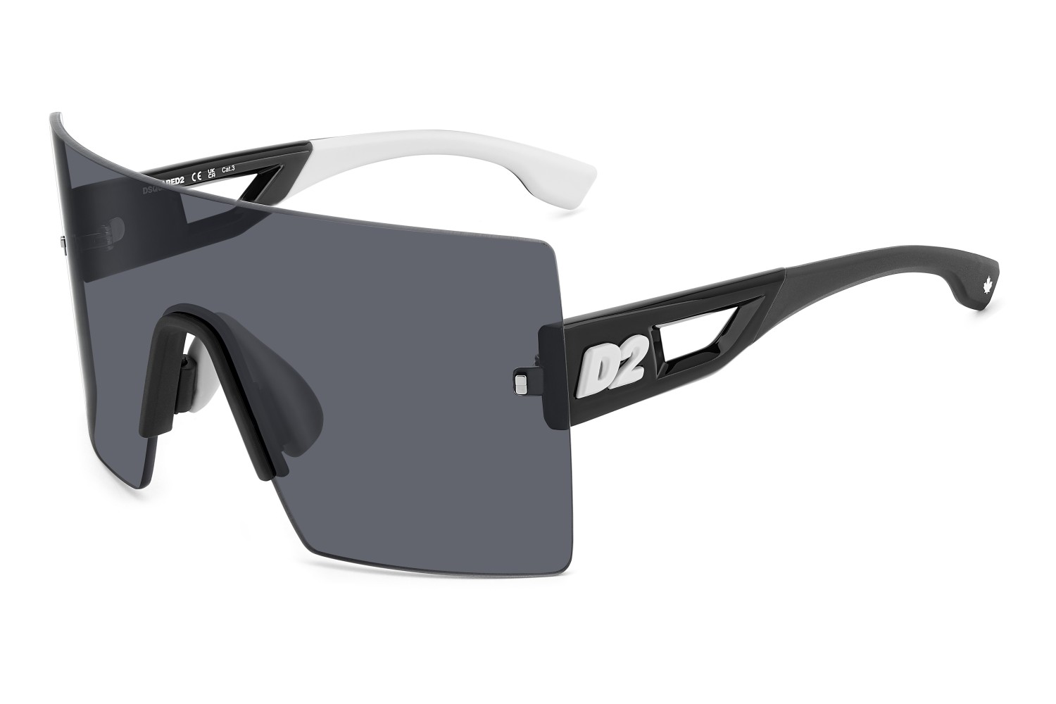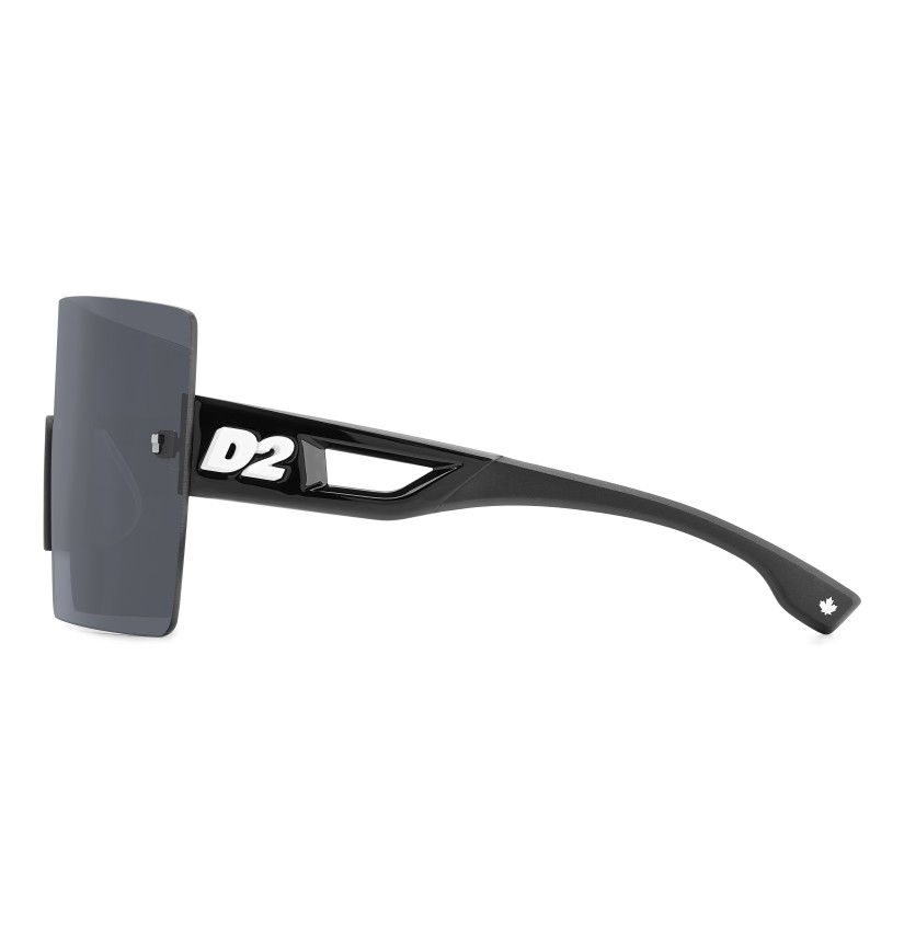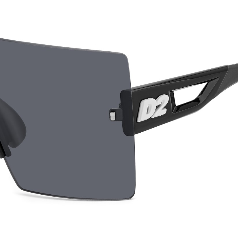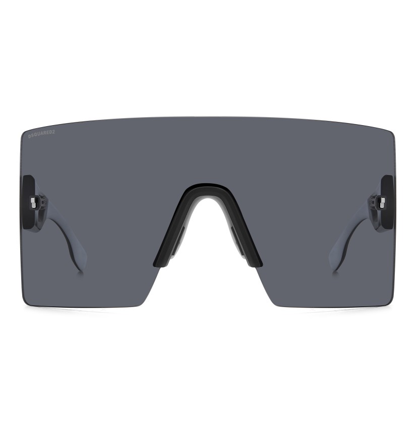 The DSQUARED2 world of fashion is all about breaking the rules, and these men’s sunglasses are proof. The avant-garde attitude is found in the wrap-around mask front, rimless and decorated with iconic DSQUARED2 metal rivets. The cut-out temples borrow from the world of sports, trimmed by the new D2 metal logo in relief, given 3D styling for an unforgettable look. The adjustable silicone nose pads and the new injection-moulded rubber end tips in two colours offer stability even when on the move, exclusive parties being no exception.