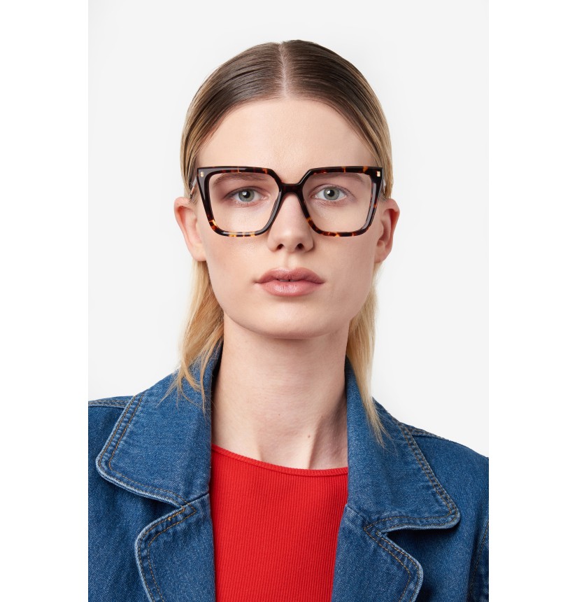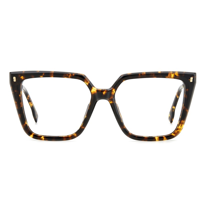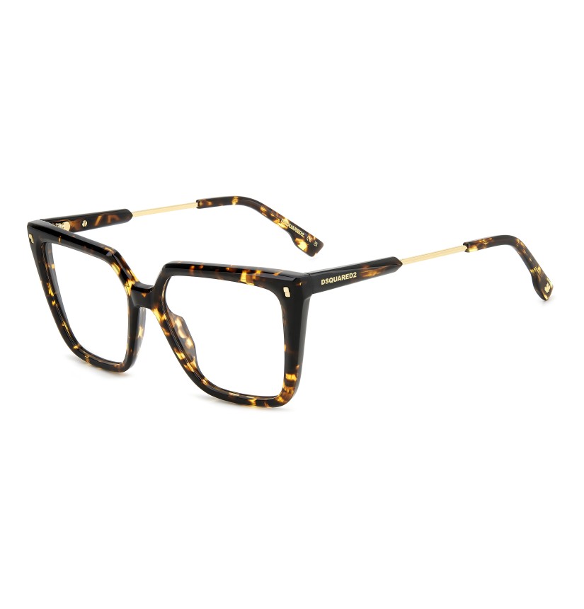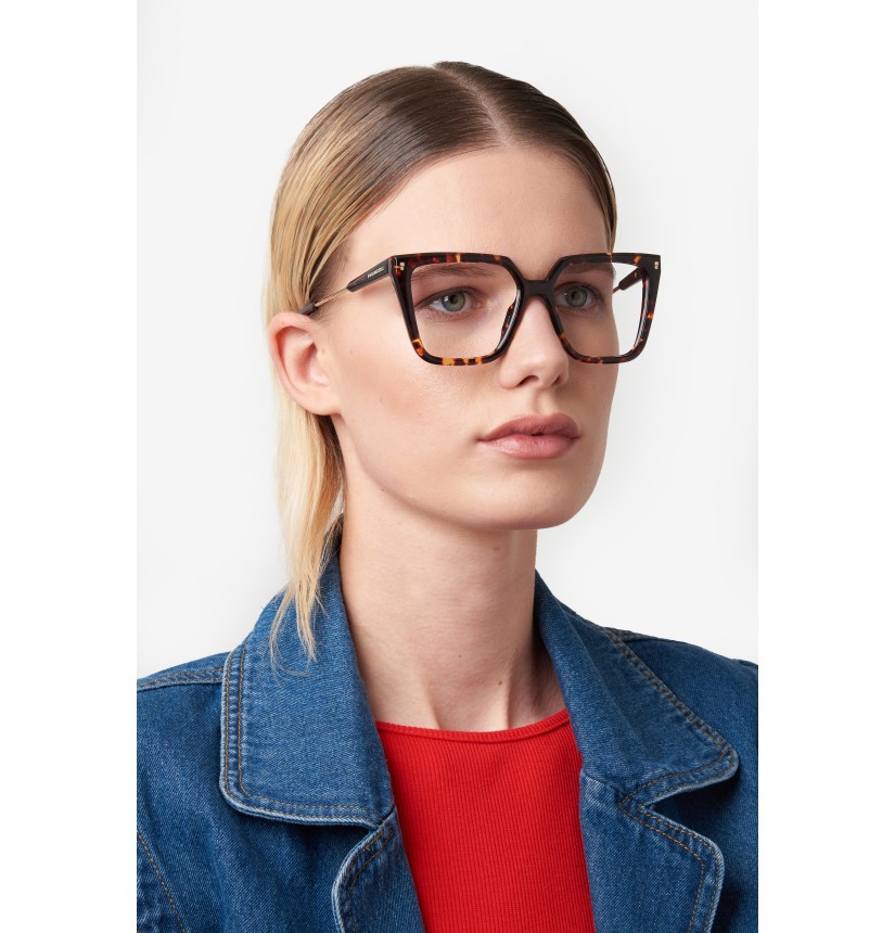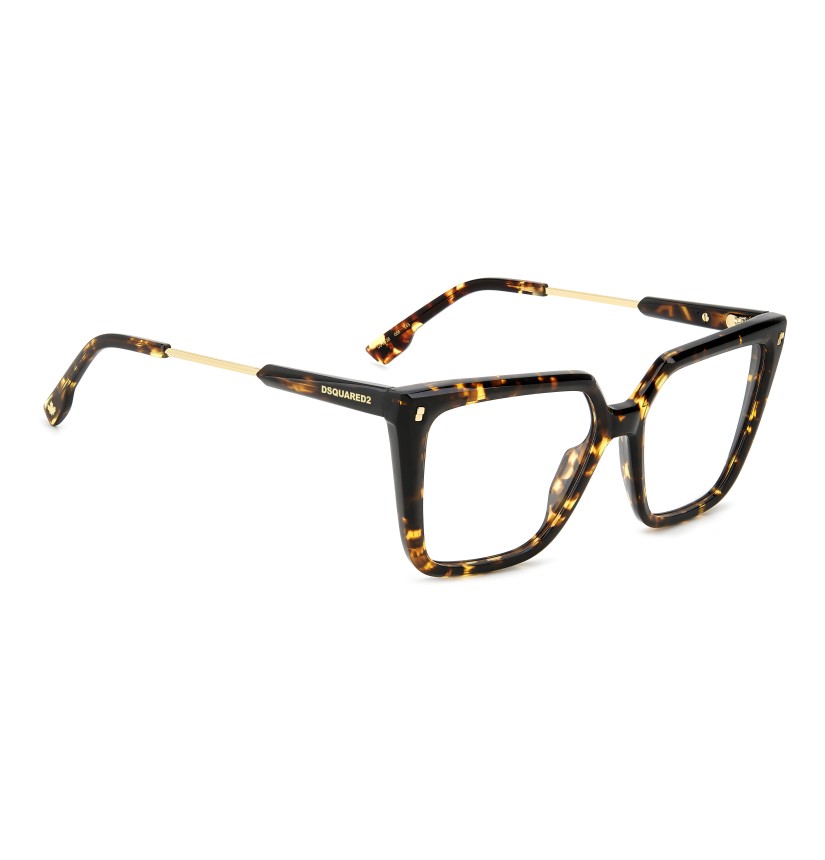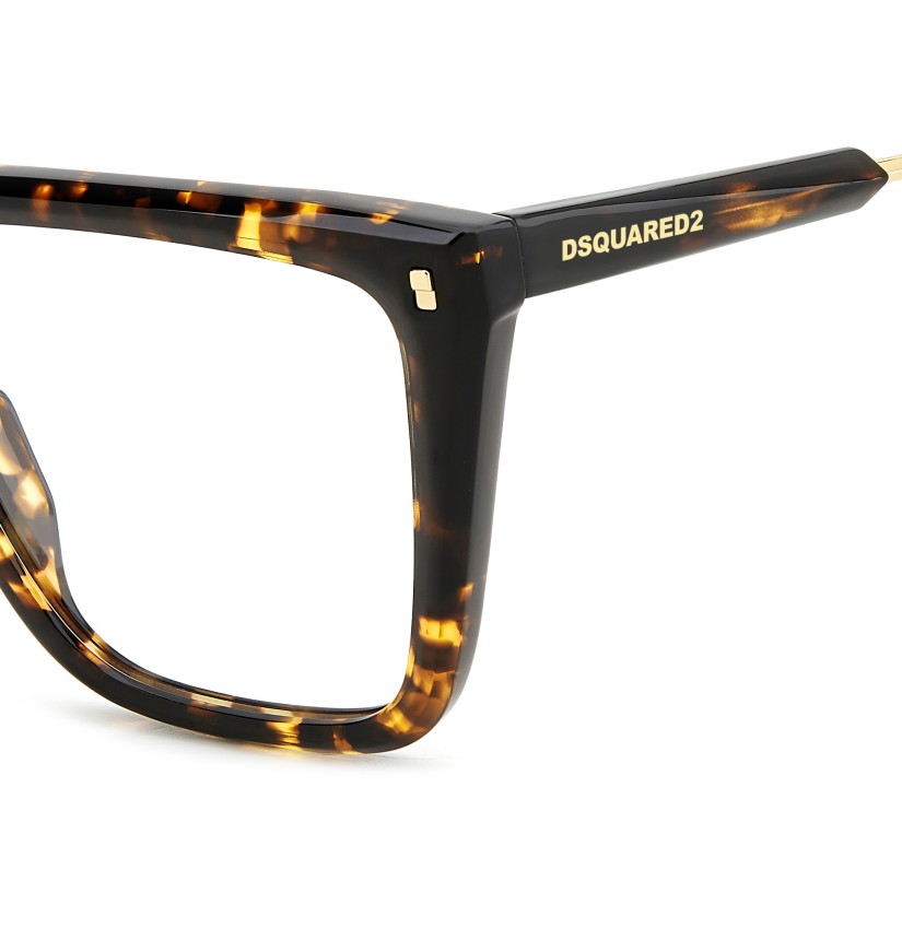 Relaxed, carefree elegance distinguishes these women’s DSQUARED2 eyeglasses. The square shape is a sure bet that tends towards daring when combined with the sculpted multi-faceted surfaces in acetate: a bold twist in absolute DSQUARED2 style. Two materials are juxtaposed on the temples, while the logo and the maple leaf ensure recognisability. Available in black, Havana or even transparent versions, for a fresh note that's sure to charm.
