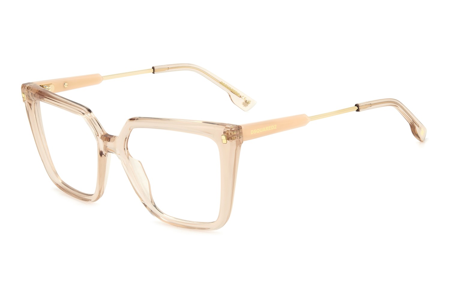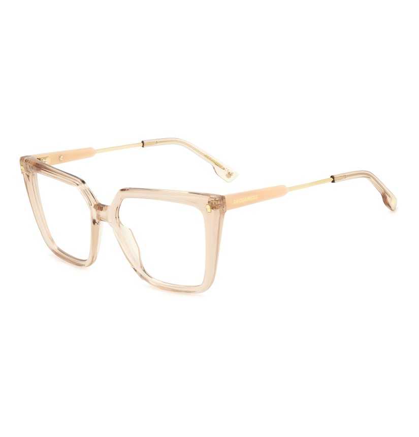 Relaxed, carefree elegance distinguishes these women’s DSQUARED2 eyeglasses. The square shape is a sure bet that tends towards daring when combined with the sculpted multi-faceted surfaces in acetate: a bold twist in absolute DSQUARED2 style. Two materials are juxtaposed on the temples, while the logo and the maple leaf ensure recognisability. Available in black, Havana or even transparent versions, for a fresh note that's sure to charm.