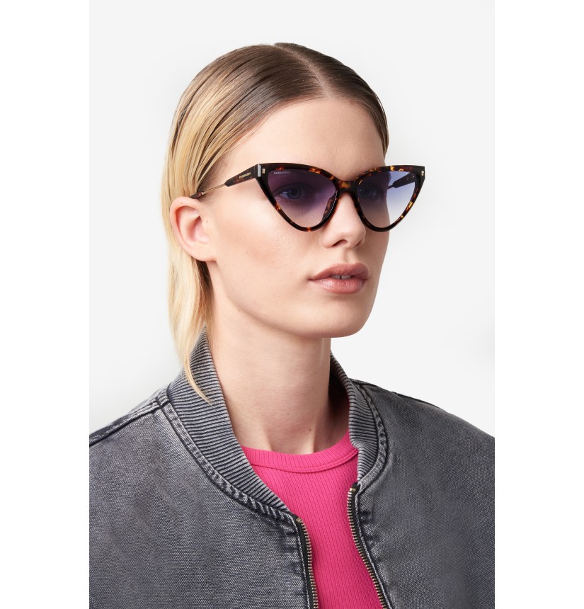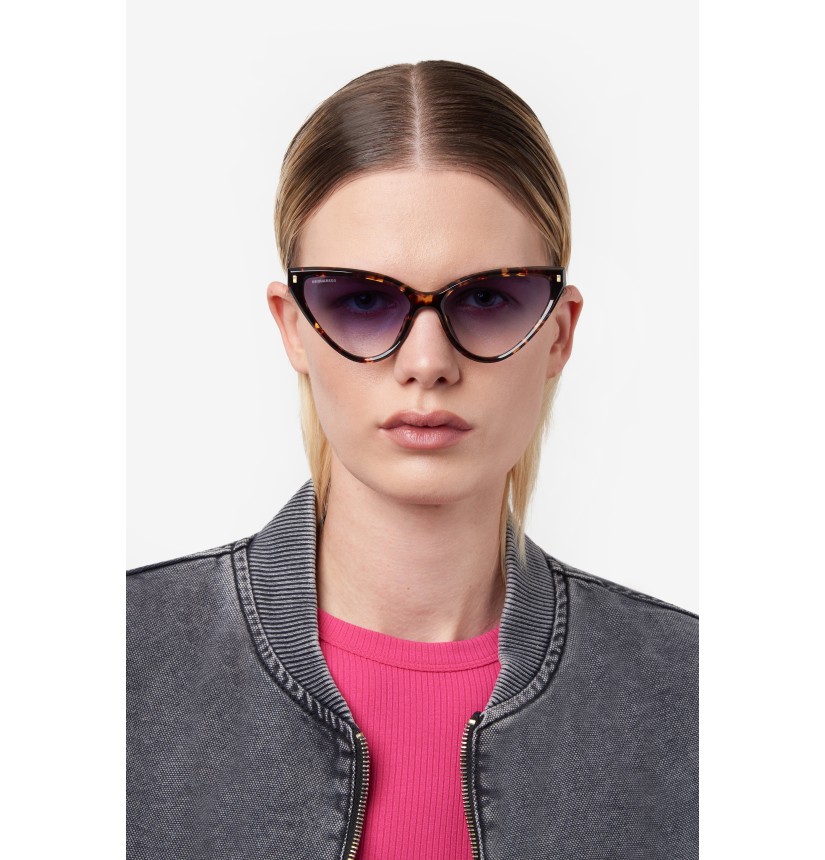 DSQUARED2 sunglasses for demanding women who want to elevate their style. Their vintage vibe comes from the cat-eye shape of the acetate frames, pared down for a lightweight feel. The metal temples are minimalist, but they wouldn’t be complete without a sculptural insert featuring the DSQUARED2 logo The frames come in mono-colouring, Havana, or multi-layer options, and can be fitted with prescription lenses. There’s even a version that comes with mirrored lenses.