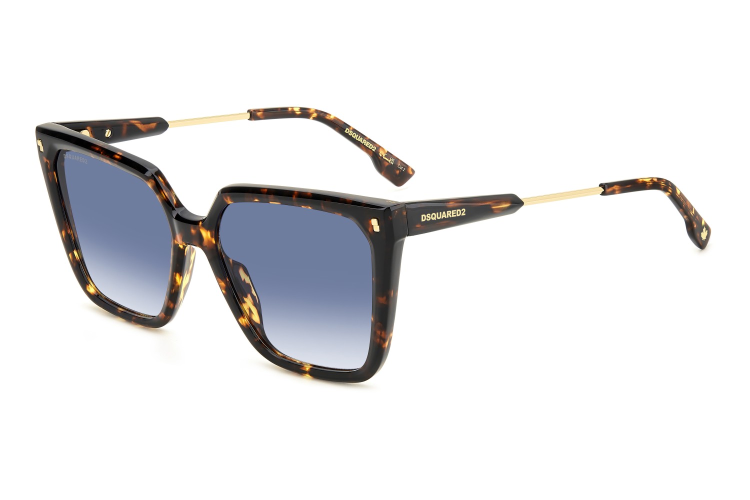 DSQUARED2 continues to mix aesthetics and moods in these sunglasses for women. The square frames are a classic in the eyewear world, here given a modern update with a bold acetate profile and the brand's iconic rivets. The creativity of the temples, which combine metal and polyamide, is astonishing, trimmed by the DSQUARED2 logo and the maple leaf on the end tips. This style comes with gradient or mirrored lenses, which can also be swapped out for prescription lenses of the customer's choosing.