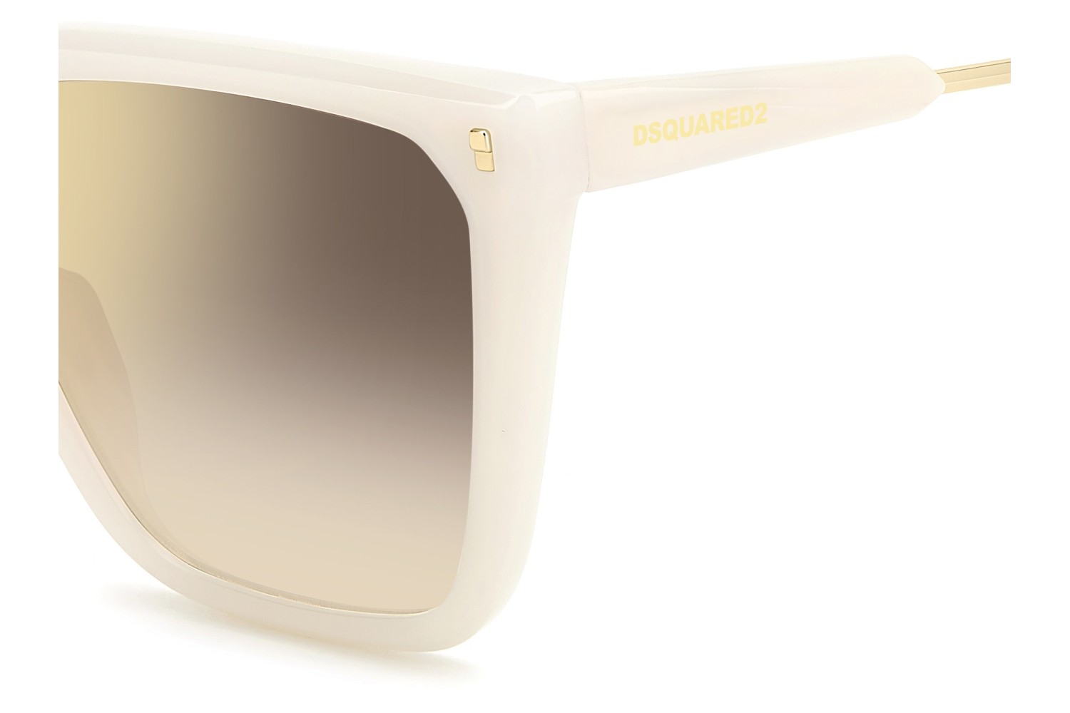 DSQUARED2 continues to mix aesthetics and moods in these sunglasses for women. The square frames are a classic in the eyewear world, here given a modern update with a bold acetate profile and the brand's iconic rivets. The creativity of the temples, which combine metal and polyamide, is astonishing, trimmed by the DSQUARED2 logo and the maple leaf on the end tips. This style comes with gradient or mirrored lenses, which can also be swapped out for prescription lenses of the customer's choosing.