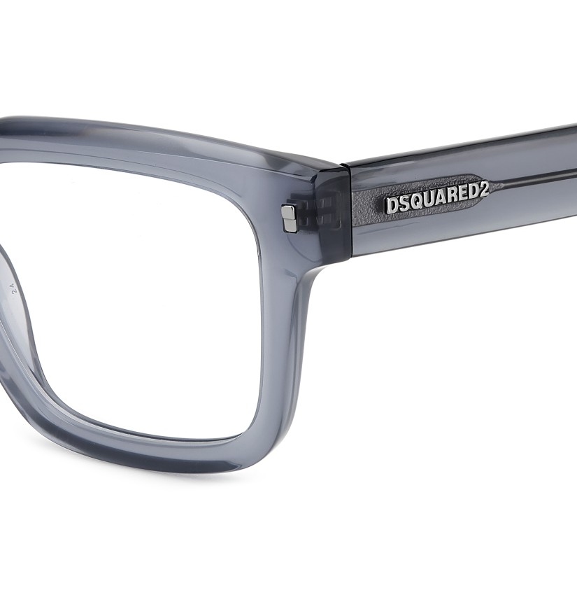 These men's eyeglasses have bold temples trimmed by a raised DSQUARED2 emblem and the CERESIO 9, MILANO inscription, plus the must-have maple leaf on the end tips. Their exclusive shape was inspired by the brand's accessories, and is enhanced by the bold acetate front with iconic metal rivets, giving these glasses plenty of personality.