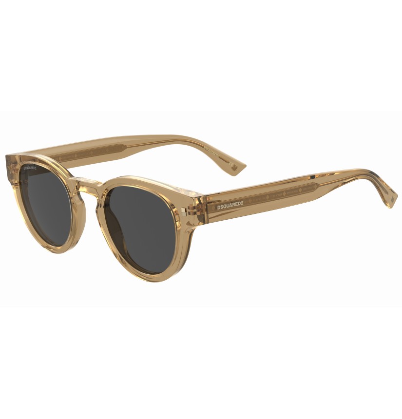These bold sunglasses have been given a fresh twist thanks to the lighter proportions of the new acetate front. The metal core with the engraved DSQUARED2 'tape' can be seen through the original temples. The brand has also signed these men's glasses with an injected logo on the outer temple near the hinges, and with the must-have maple leaf on the comfortable end tips: distinctive features that convey truly unique design.