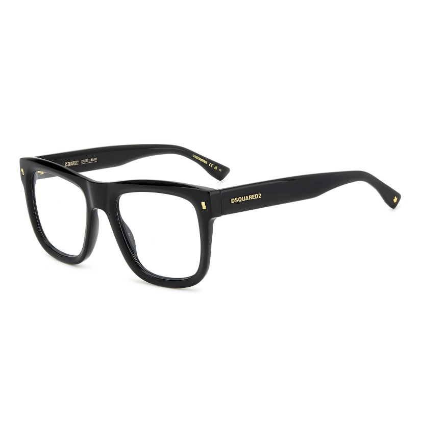 Cool glamour is an essential component of these men's eyeglasses and the entire DSQUARED2 universe. The acetate frames are bold, generous, multifaceted, and surprisingly lightweight. Details that identify the brand make them legendary: rivets on the front, a raised DSQUARED2 logo, the CERESIO 9, MILANO reference on the inside of the temples, and the maple leaf on the end tips.