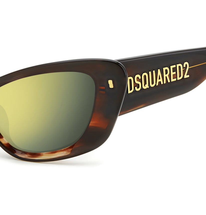These extra-coverage DSQUARED2 sunglasses were plucked straight from the runway. The cat-eye shape makes them epic, reinterpreted in a contemporary key. They’re even more incisive with mirrored lenses. Balancing vintage and cutting-edge, this style has maxi temples with the DSQUARED2 logo and tapered end tips trimmed by the brand's maple leaf symbol. The colour palette includes pastel tones with glitter.