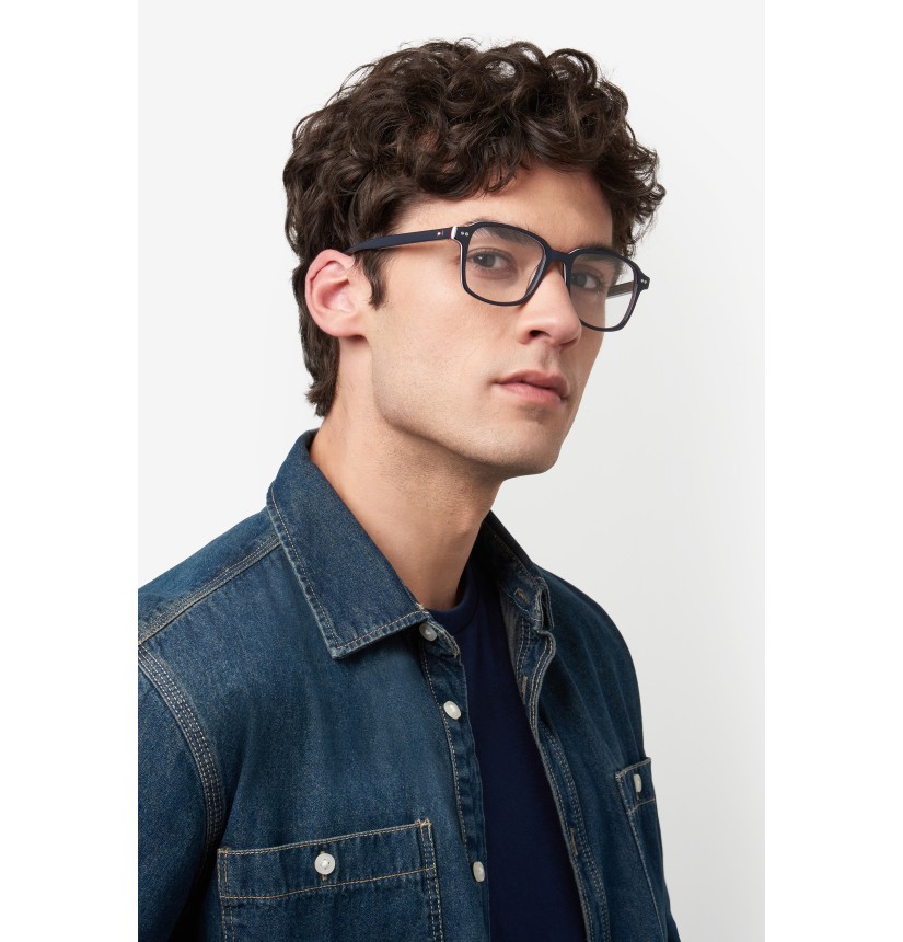 The preppy style of TOMMY HILFIGER is perfectly on trend, and these men's eyeglasses are no exception. The brand looks to greater sustainability, crafting these glasses in renewed acetate. They’re enriched by stylish details, such as the two rivets on the front and the unmistakable flag on the temples and the ribbon on the left end tip. They come in classic colours or on-trend hues, including a multi-layer option.